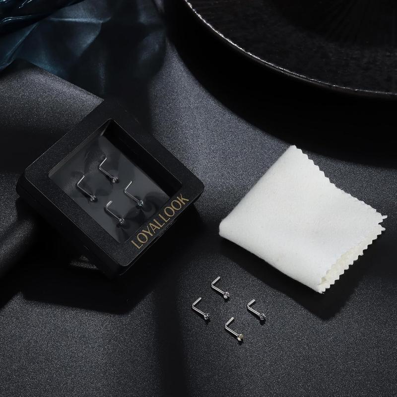 ·Nose Ring Set: 8pcs silver tone hypoallergenic L shape nose studs round diamond nose rings set, fashion and popular L shaped nose studs can meet your needs for being beautiful and fashionable.