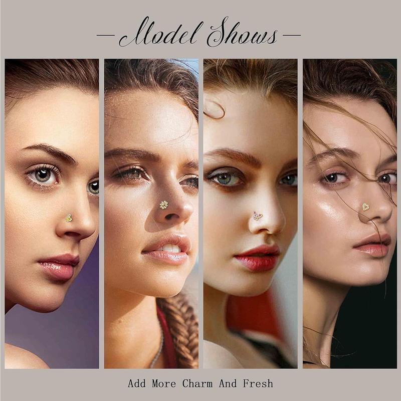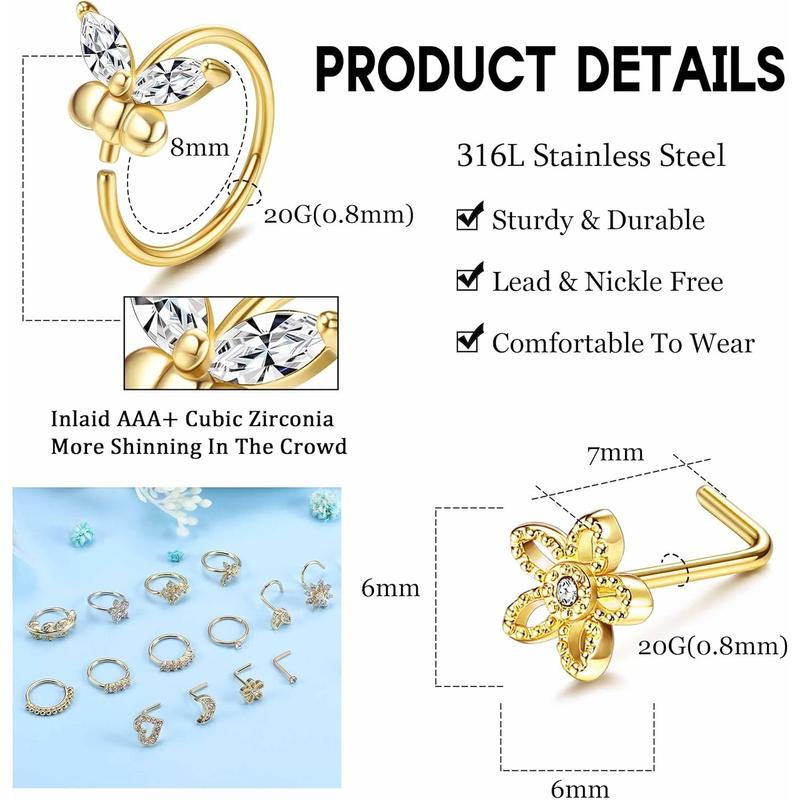 ·HIGH QUALITY MATERIAL--Crafted By Premium 316L Stainless Steel and Shiny CZ, Sturdy and Durable, Lead and Nickle Free, Friendly To Your Sensitive Skin. With All-Round High Polished, These Nose Jewelry Will Stay Bright For a Long Time and Not Easy To Fade, Giving You a Comfortable Experience.