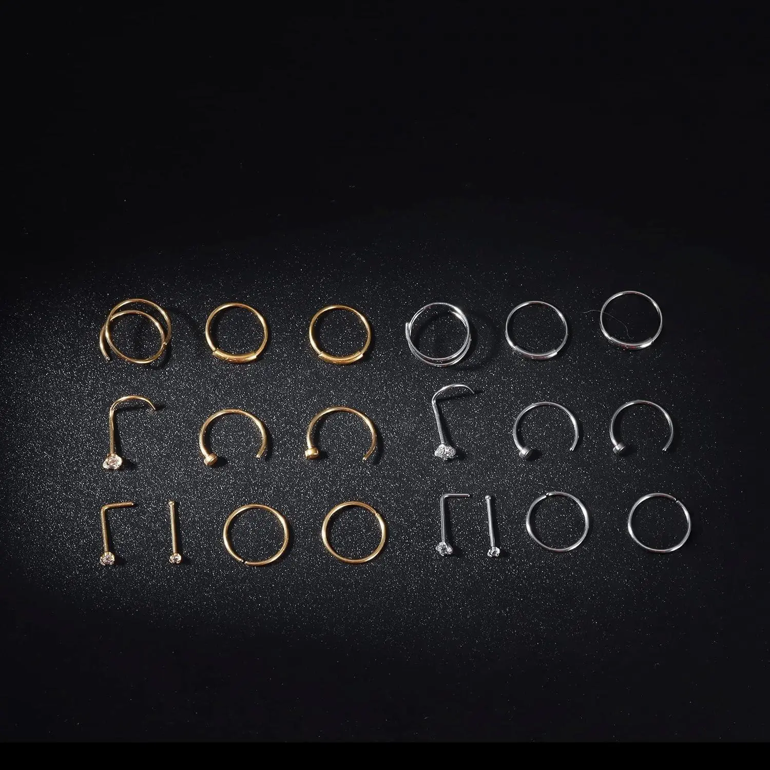20 count Nose Rings Set:You Will Get 20 Count 20G Piercing of Different Styles,So Many Varieties to Choose From,It Fits Perfectly and Comfortably for Everyday Wear.You Will Absolutely Love These Nose Hoop and Nose Studs.Looks Super Cute and You Will Get So Many Compliments When You Wear This Spiral Nose Hoop.