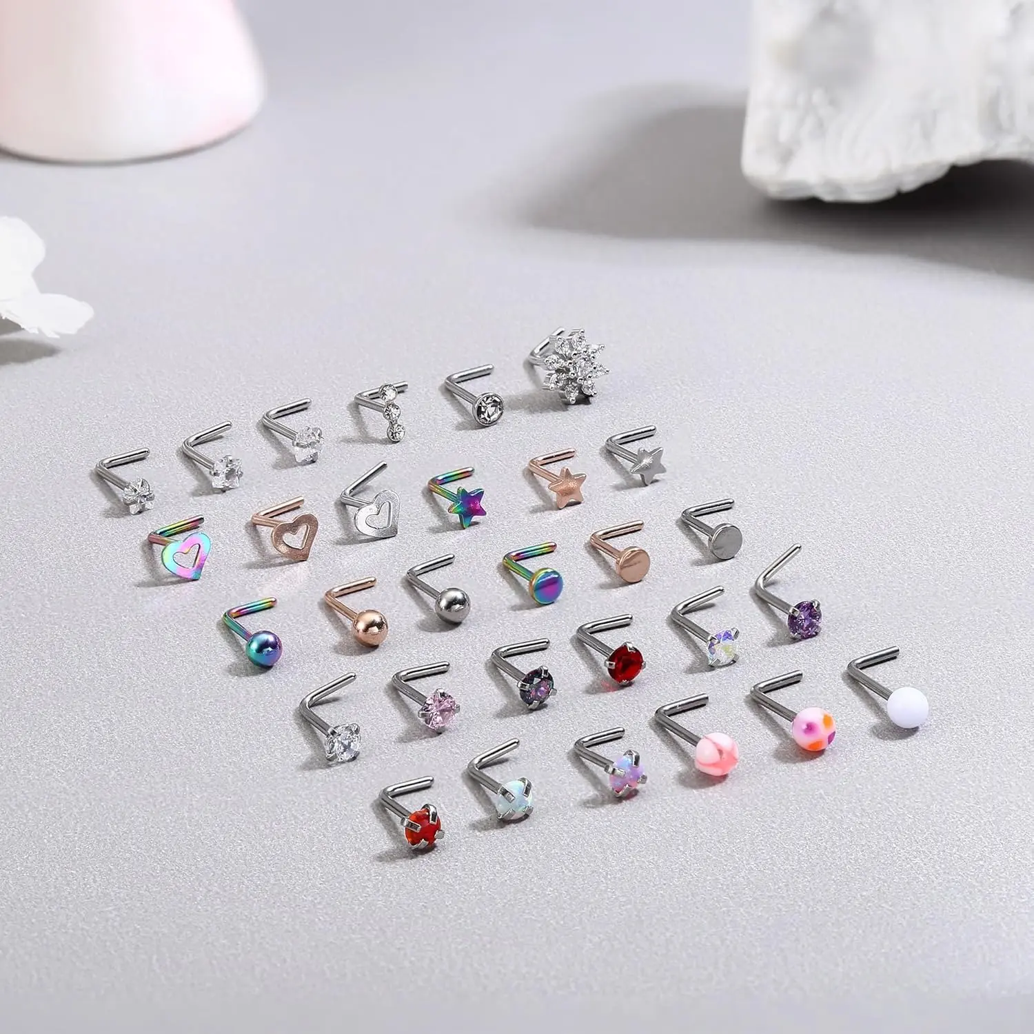 Finally a good pack of nose rings 😭 so many different designs! Love it!