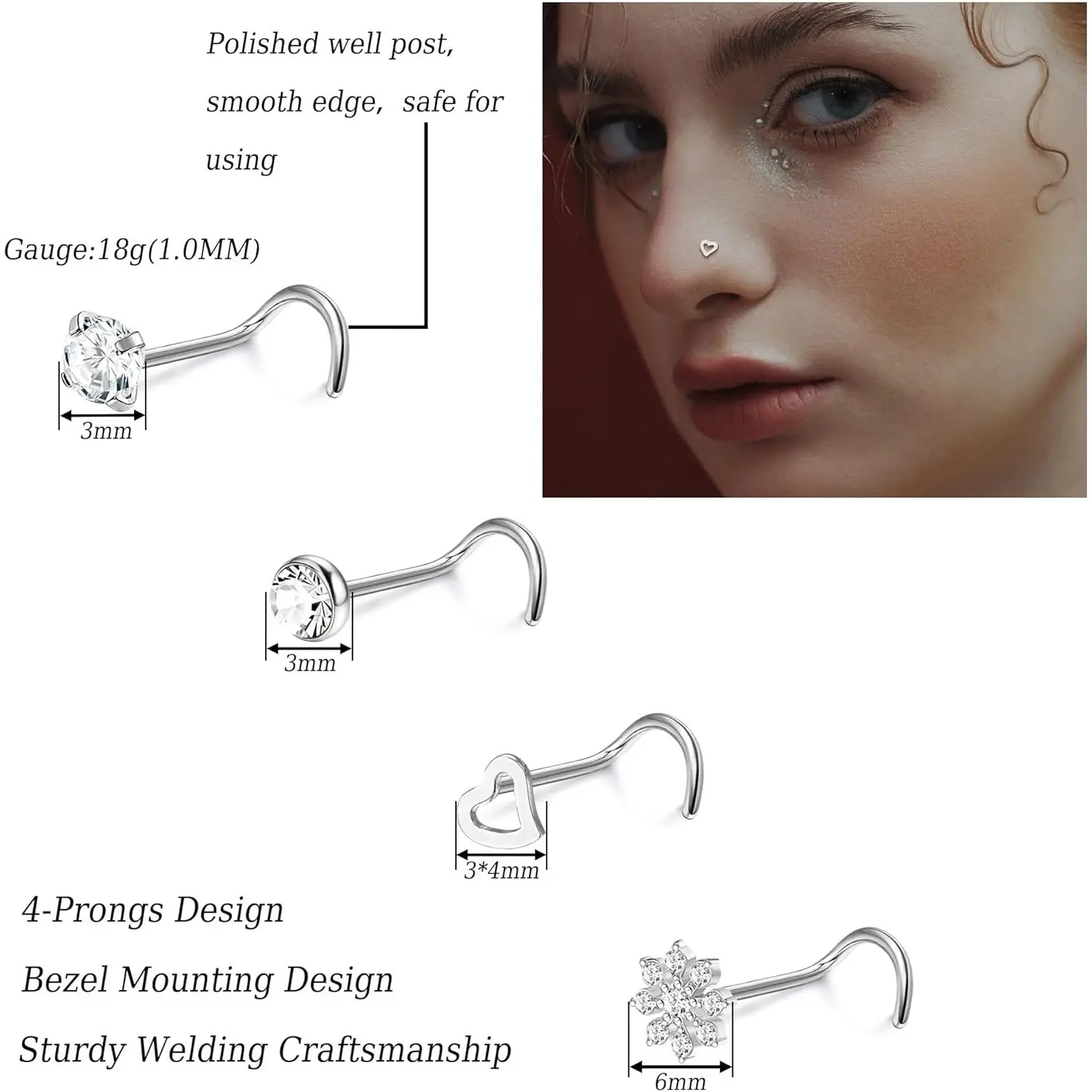 18G(1.0mm) / Screw Shaped Nose Studs