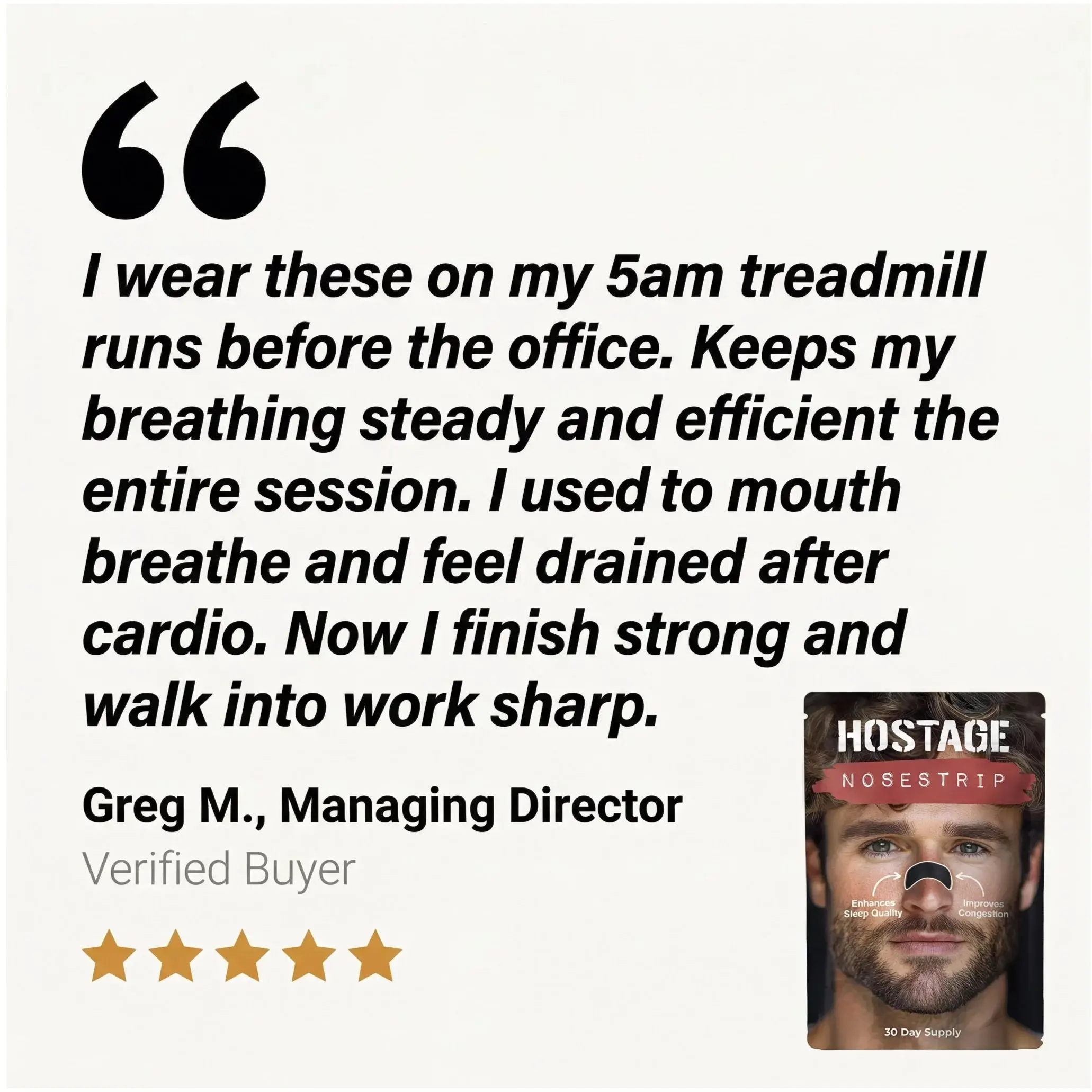 I love it. I actually put it on in the early early am and run with it on. I breathe so much better, and only nose breathe on my runs. Thank you hostage!!!!