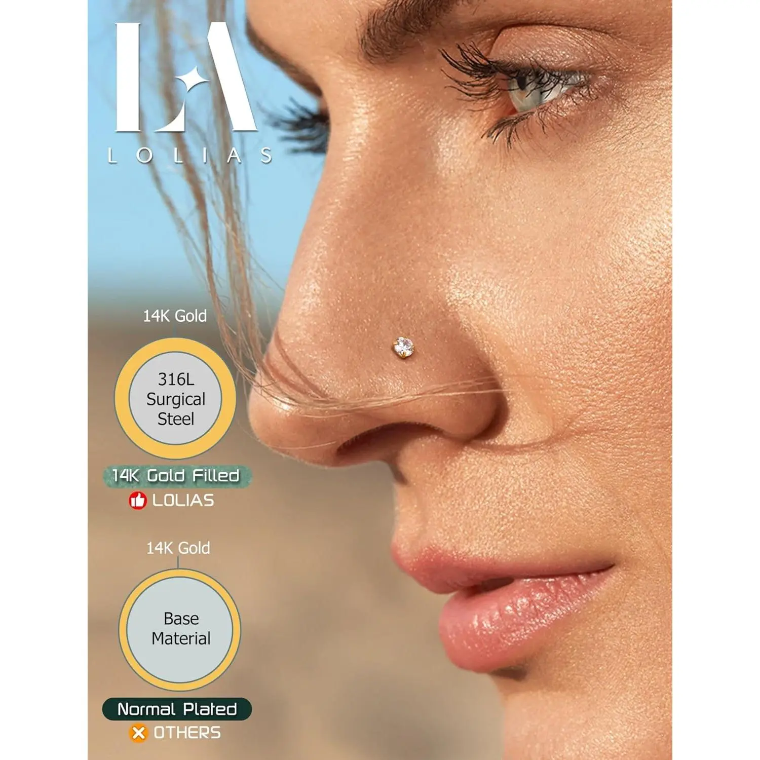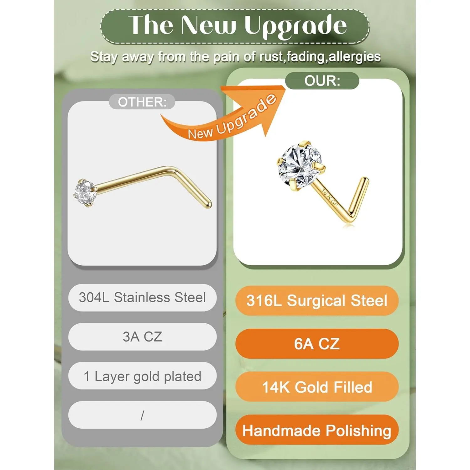 ·New Upgraded Jewelry: 14K Gold Filled and 316L Surgical Steel Nose Rings Studs,Hypoallergenic Nose Studs for Sensitive Skin
