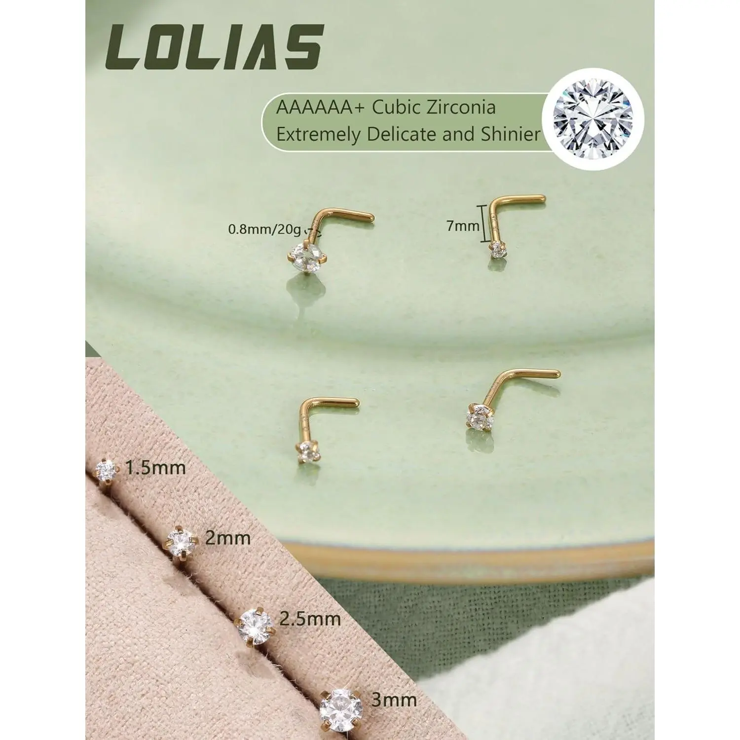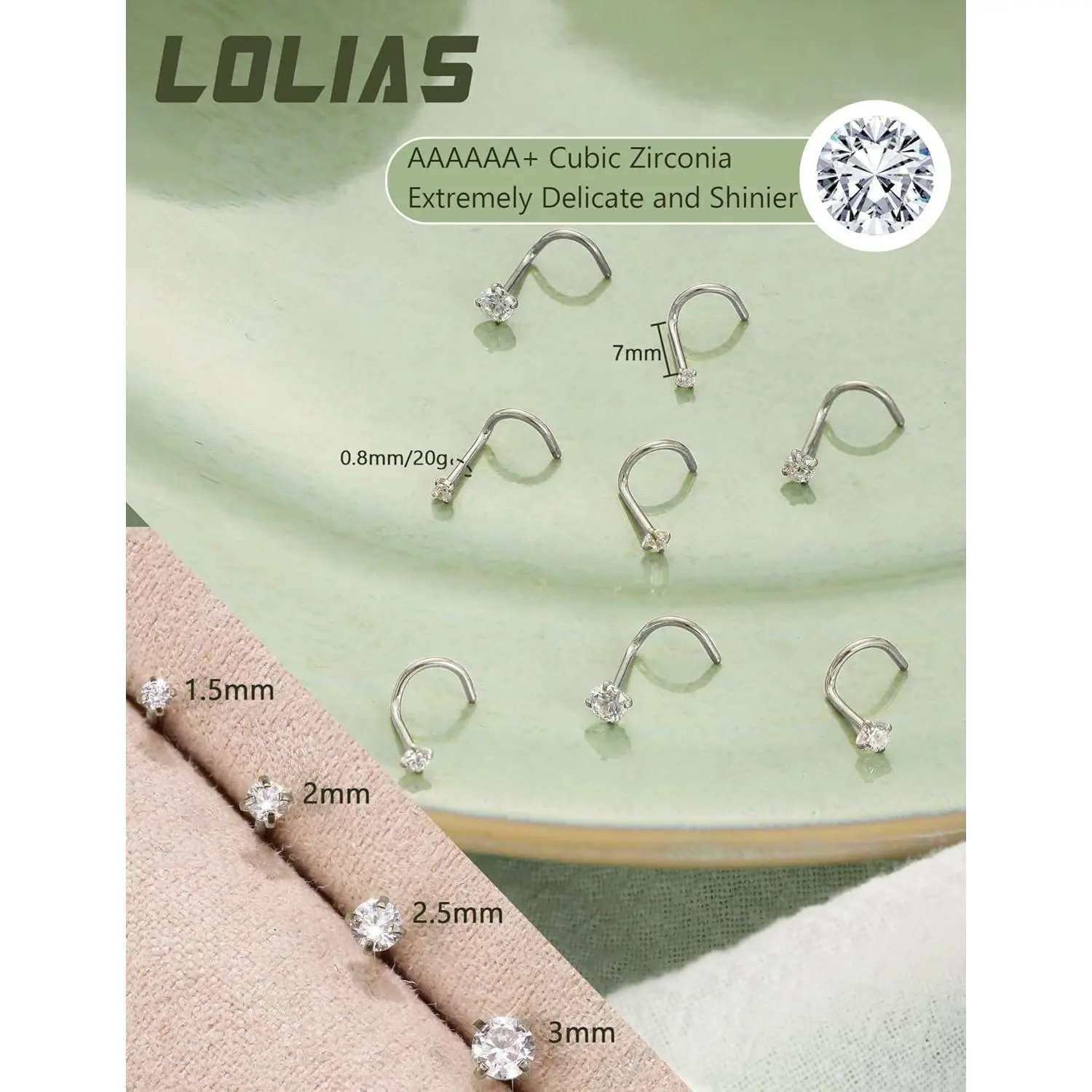 ·Different Size Pack: Gauge: 20 G (0.8 mm),Pin Length: 7 mm,Prong Set Cubic Zirconia: 1.5/2/2.5/3 mm.Please Choose Your Desired Size Pack Carefully