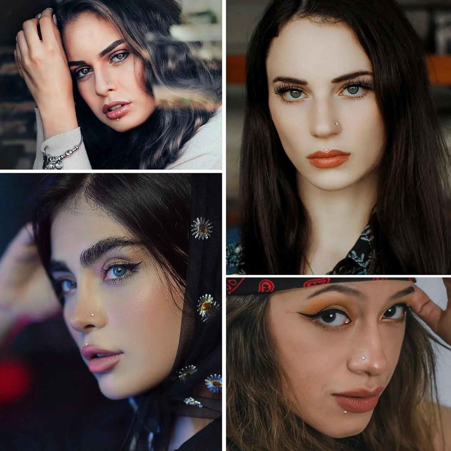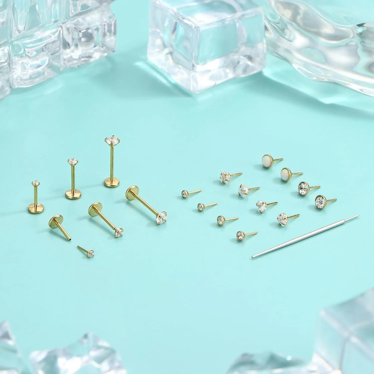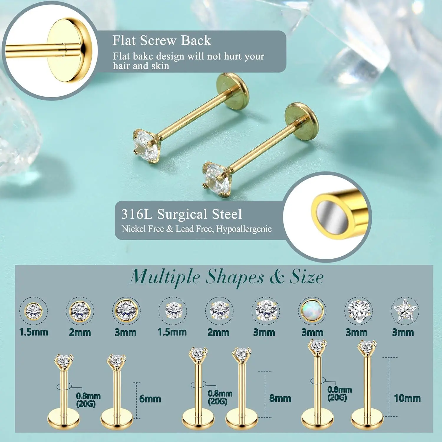5. ZELORES 25Pcs 14K Gold Plated Threadless Nose Studs for Women Men 316L Stainless Steel Labret Stud Push In Nose Ring Stud Monroe Lip Rings CZ Opal Flat Back Nose Piecing Jewelry 1.5mm 2mm 3mm Small Hoop Earrings Set minimalist elegant fashion
