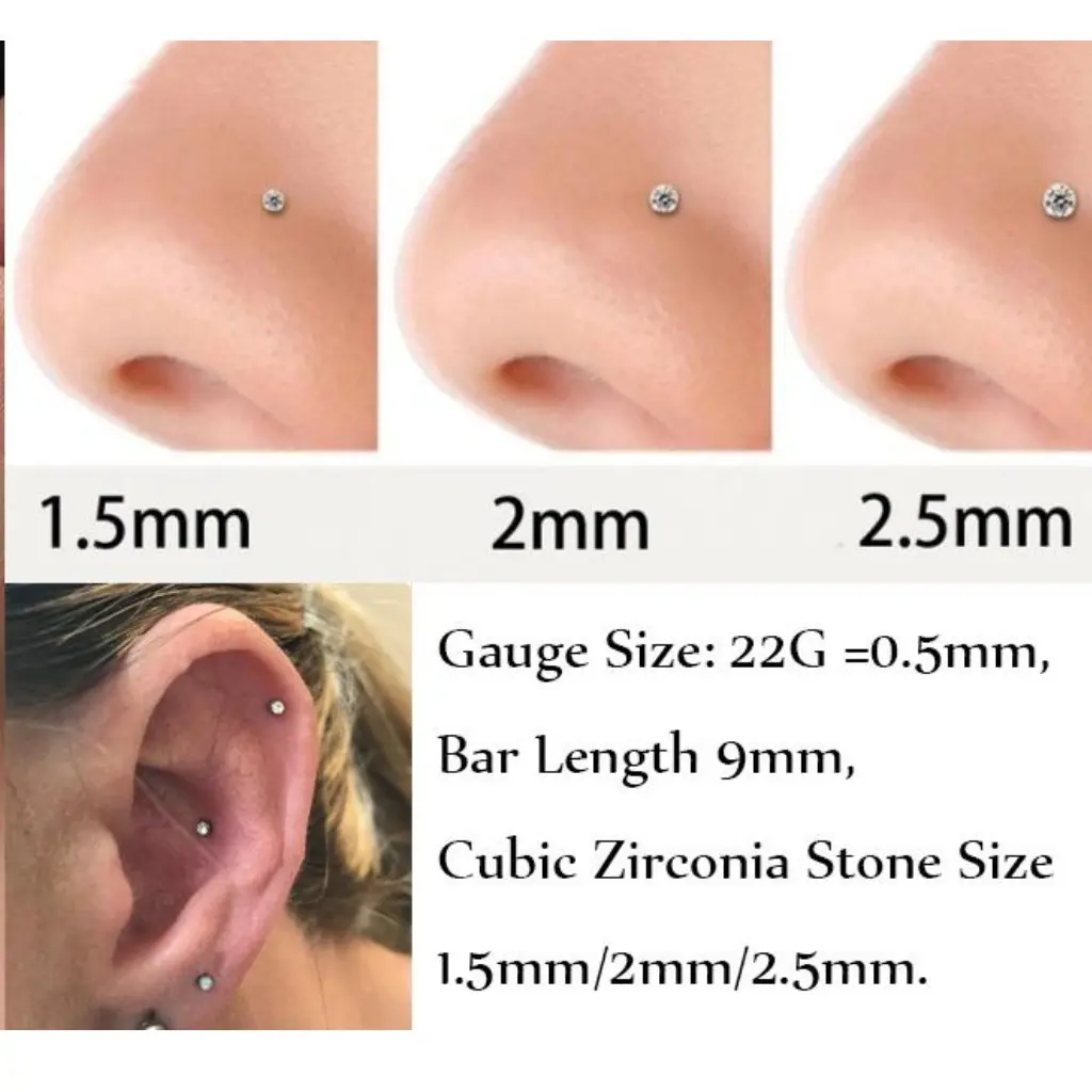 ·Silver Nose Studs Size: The nose stud gauge size is 22 g(0.5mm), bar length is 7mm, inlaid with 5A+ Cubic Zirconia(size 1.5 mm), suitable for most nose piercings.