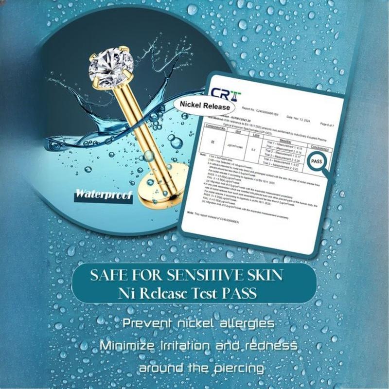 ·QUALITY MATERIAL: These flat back nose studs and hoop nose rings made of 14K gold filled 316L surgical steel and adorned with sparkling AAA+ cubic zirconia; No nickel and lead, threadless push in design is suitable for all day wear, hypoallergenic threadless Push in design ,easy to wear