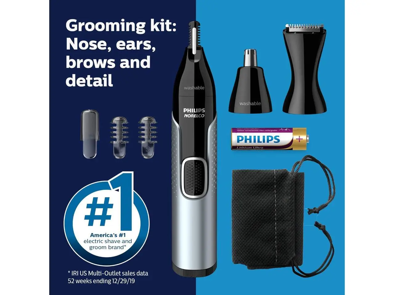 Philips Norelco Nose Trimmer 5000 for Nose, Ears, Eyebrows Trimming Kit, NT5600/62