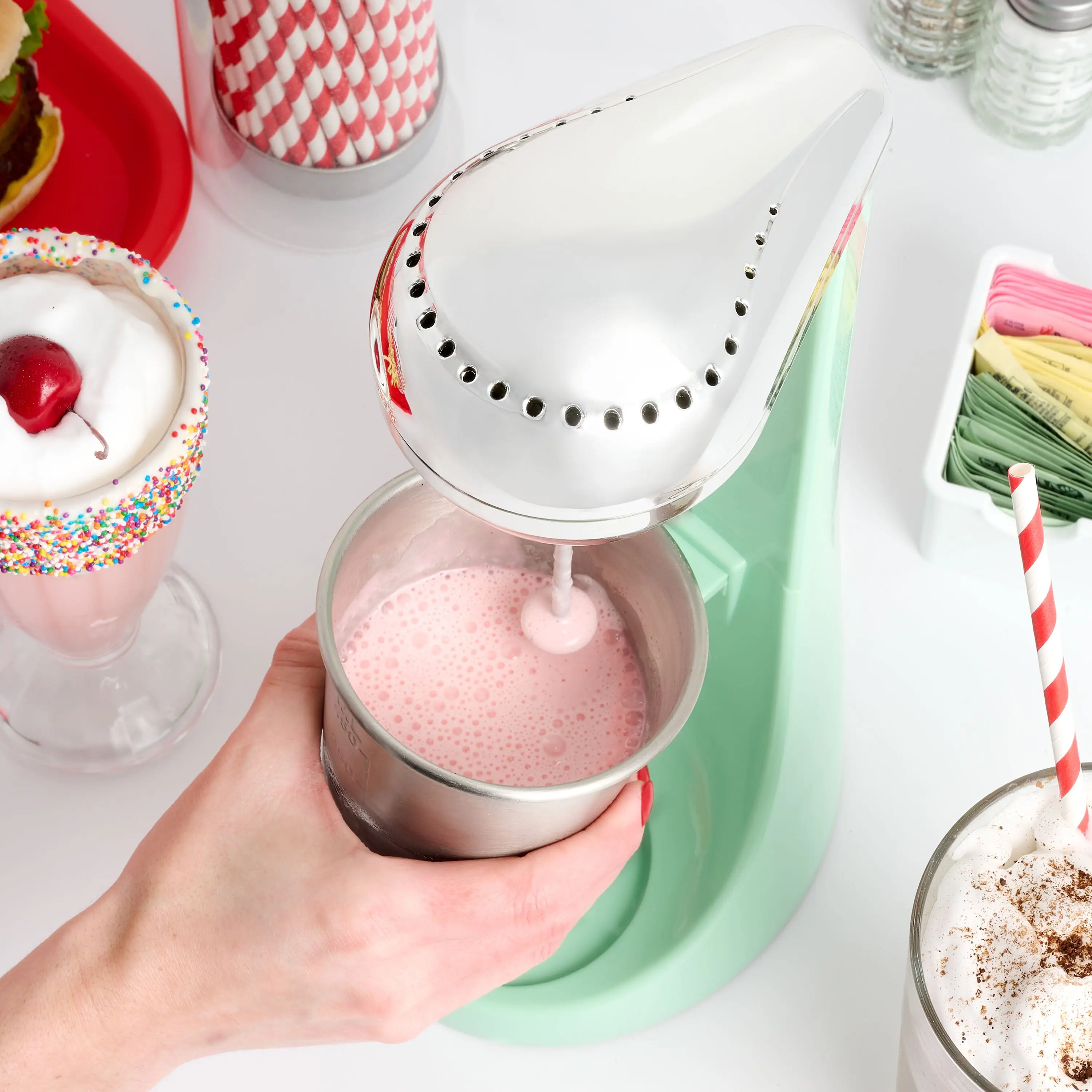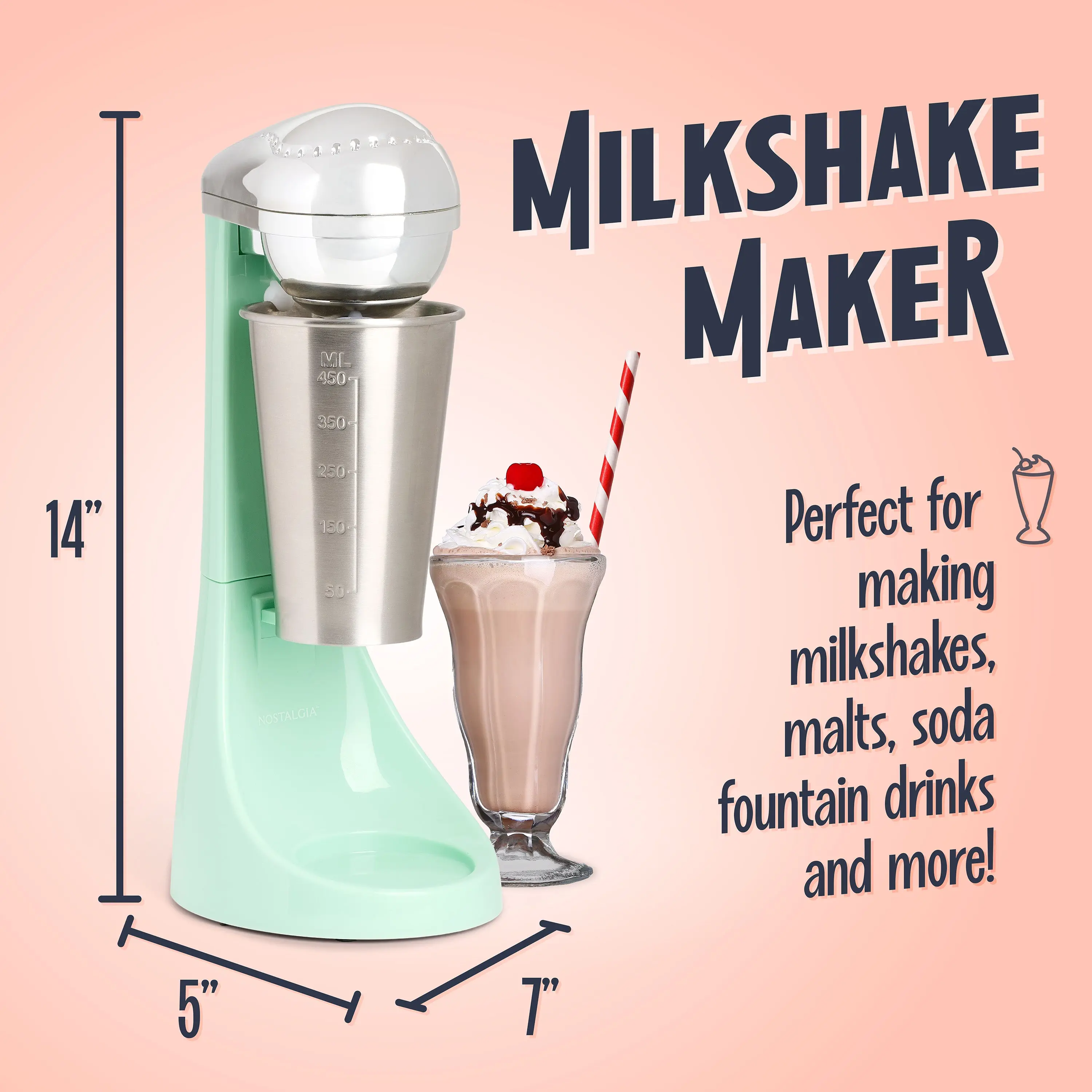 ·Fun and Easy to Use: This drink maker brings the old-time ice cream parlor to your kitchen. Perfect for making milkshakes, malted milks, soda fountain drinks, and health drinks! 🍦