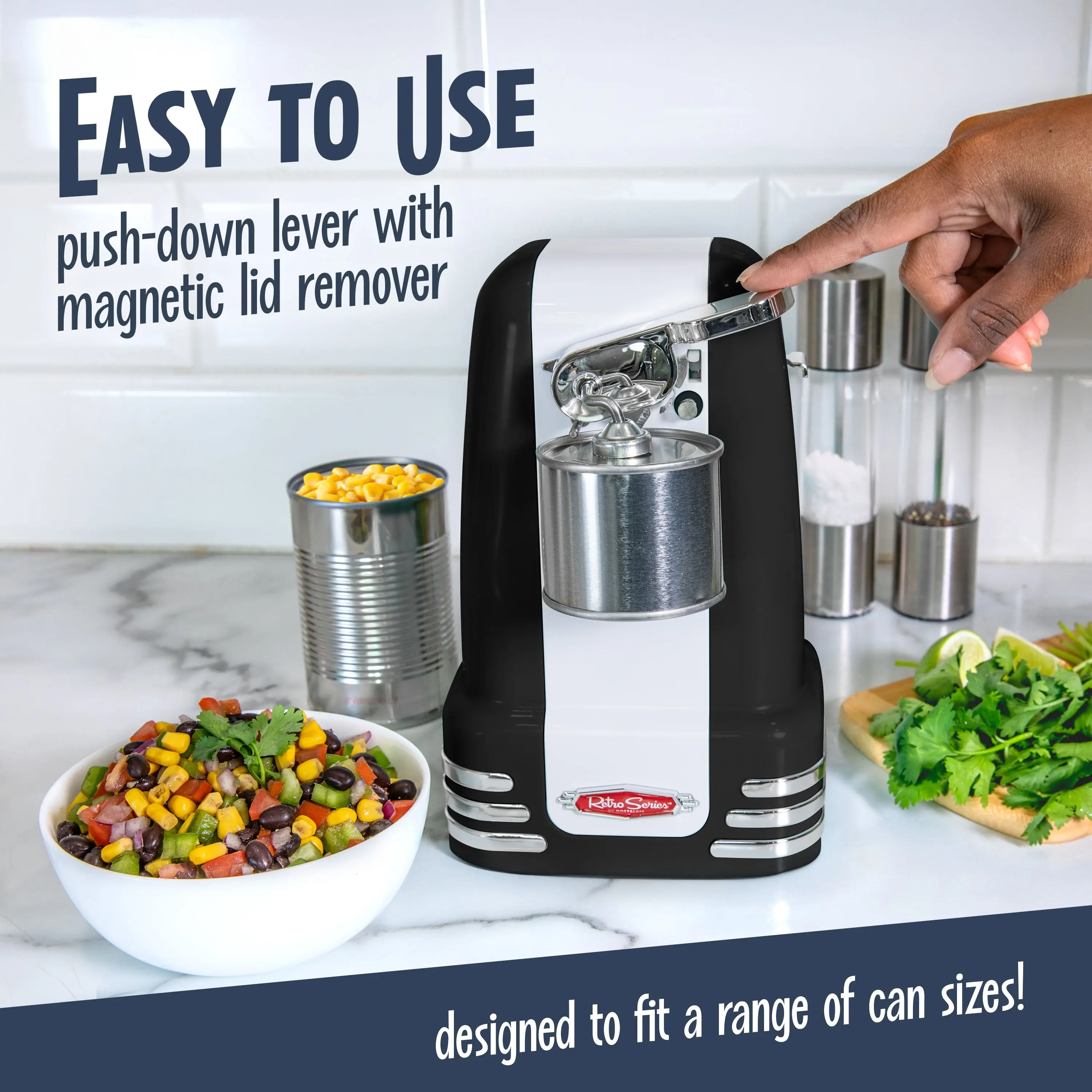 ·OPEN CANS WITH EASE: Avoid fussy can opening with this easy-to-use electric can opener, activated effortlessly by the push handle to grant you access to all your canned food.