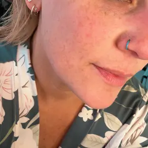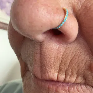 This turquoise nose ring is a charming and vibrant accessory that brings color to your nose piercing.