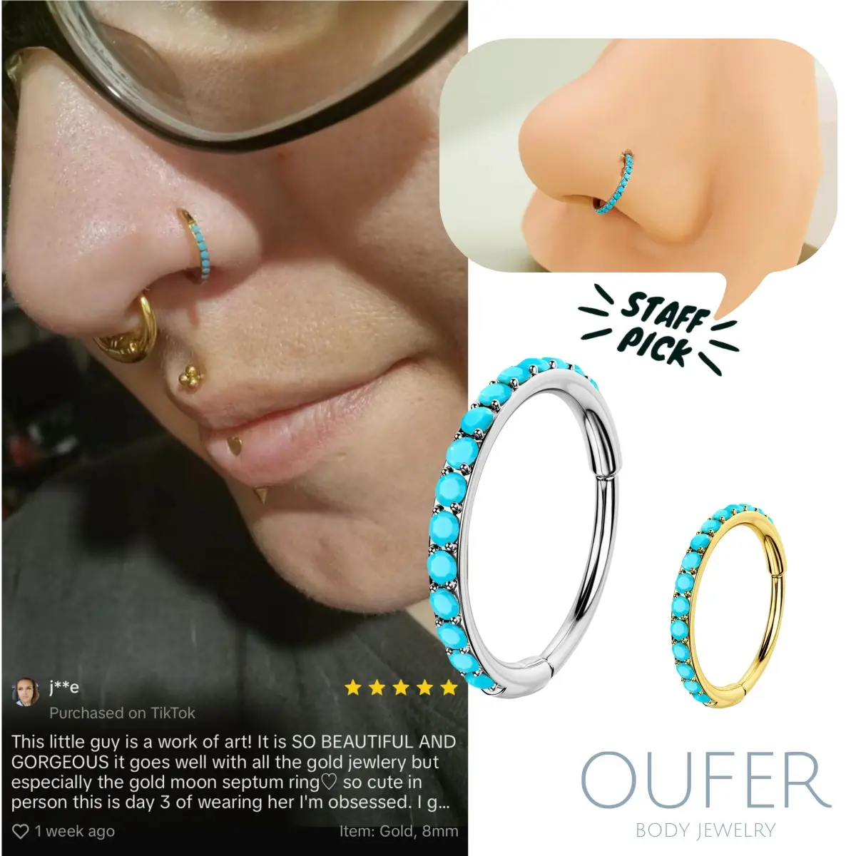 This Oufer 20G Turquoise-Hinged Segment Nostril Nose Piercing Ring is the perfect accessory to complement your new piercing.