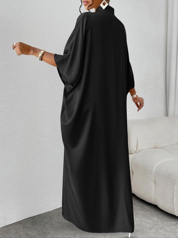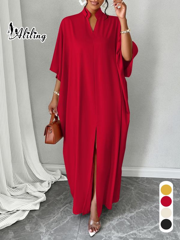 5. Women's Plain Notched Neck Split Hem Long Dress, Elegant Fashion Casual Dress for Daily Outdoor Wear, Women Dress for Summer