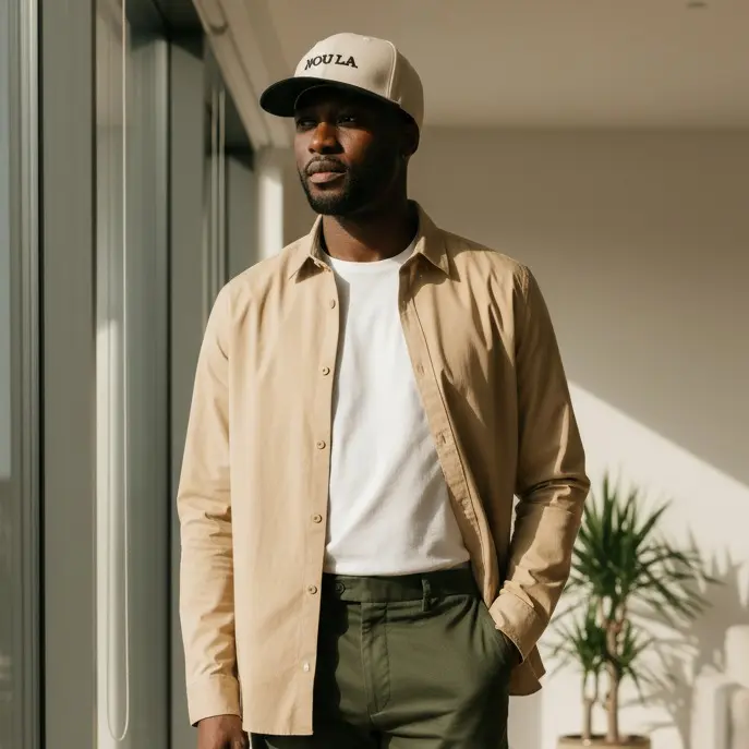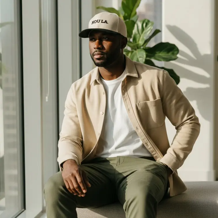 The NOU LA. 5 Panel Cap is a top choice for headwear. It features a clean, structured front panel for standout designs. The mid-profile fit ensures long-lasting comfort. The adjustable snap closure keeps everything secure. The slightly curved visor adds a classic touch. The matching fabric undervisor and sweatband complete the style. Perfect for any outfit.