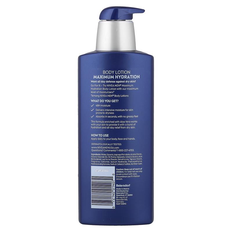 Nivea Men, Maximum Hydration, 48H Moisture Lotion, For Dry Skin, 16.9 fl oz (500 ml)