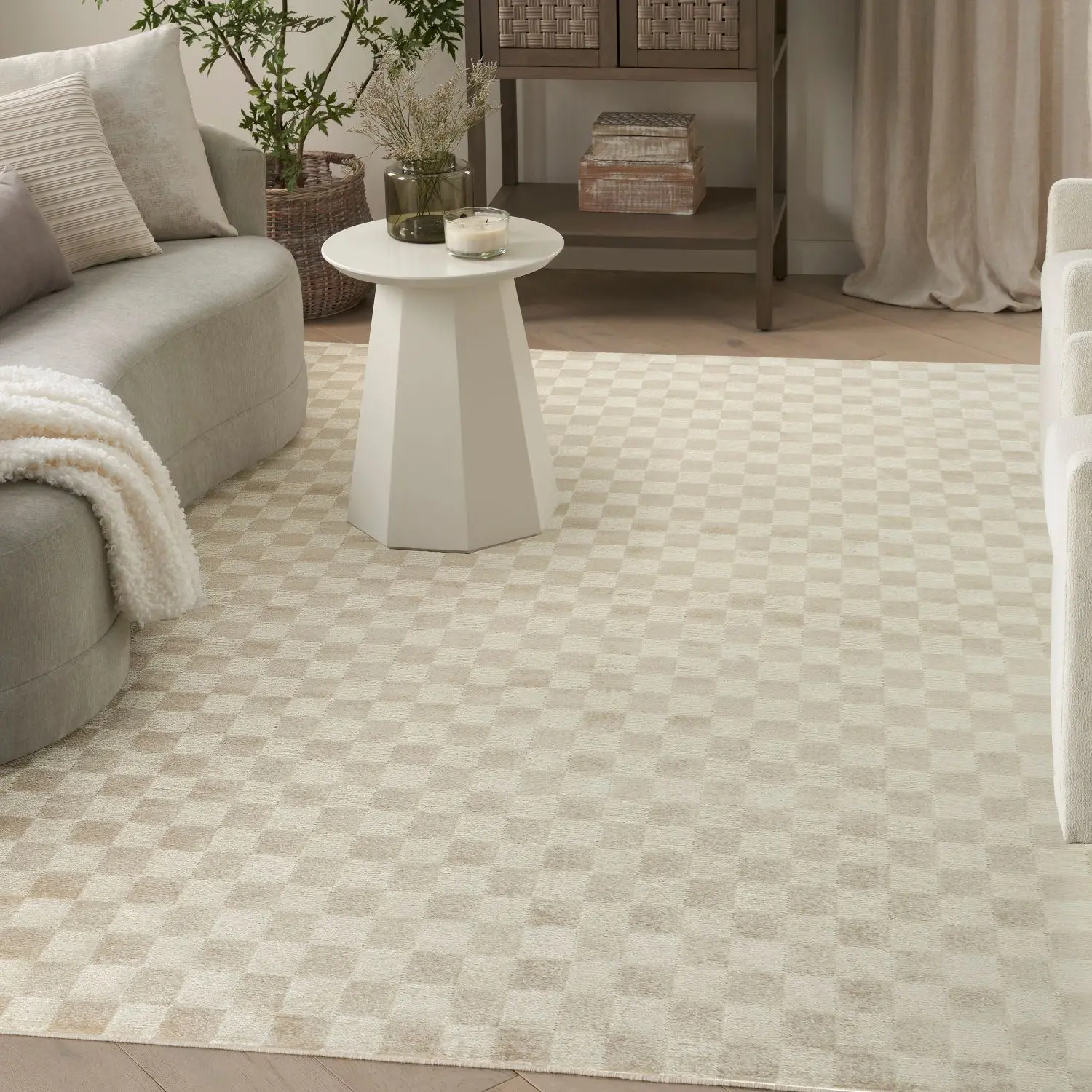 This checkerboard rug from the Serenity Home collection combines style and practicality to give you a charming, low-maintenance addition to your decor. The balanced design, paired with a subtle high-low texture, creates a fresh yet timeless look. This geometric rug is made from a blend of soft yet durable polypropylene and polyester. OEKO-TEX Certified.