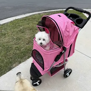 Featuring two cup holders and a center tray, with an additional basket underneath for extra items, making it convenient for walks in the park or shopping trips with your pet.