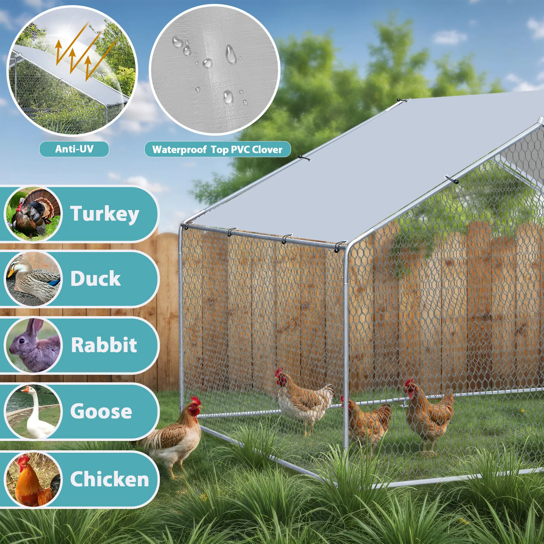 Great for Outdoor Use: The UV- and water-resistant PVC cover with galvanized coop protects chickens from the elements and provides rust, corrosion and fade resistance for long-lasting performance.