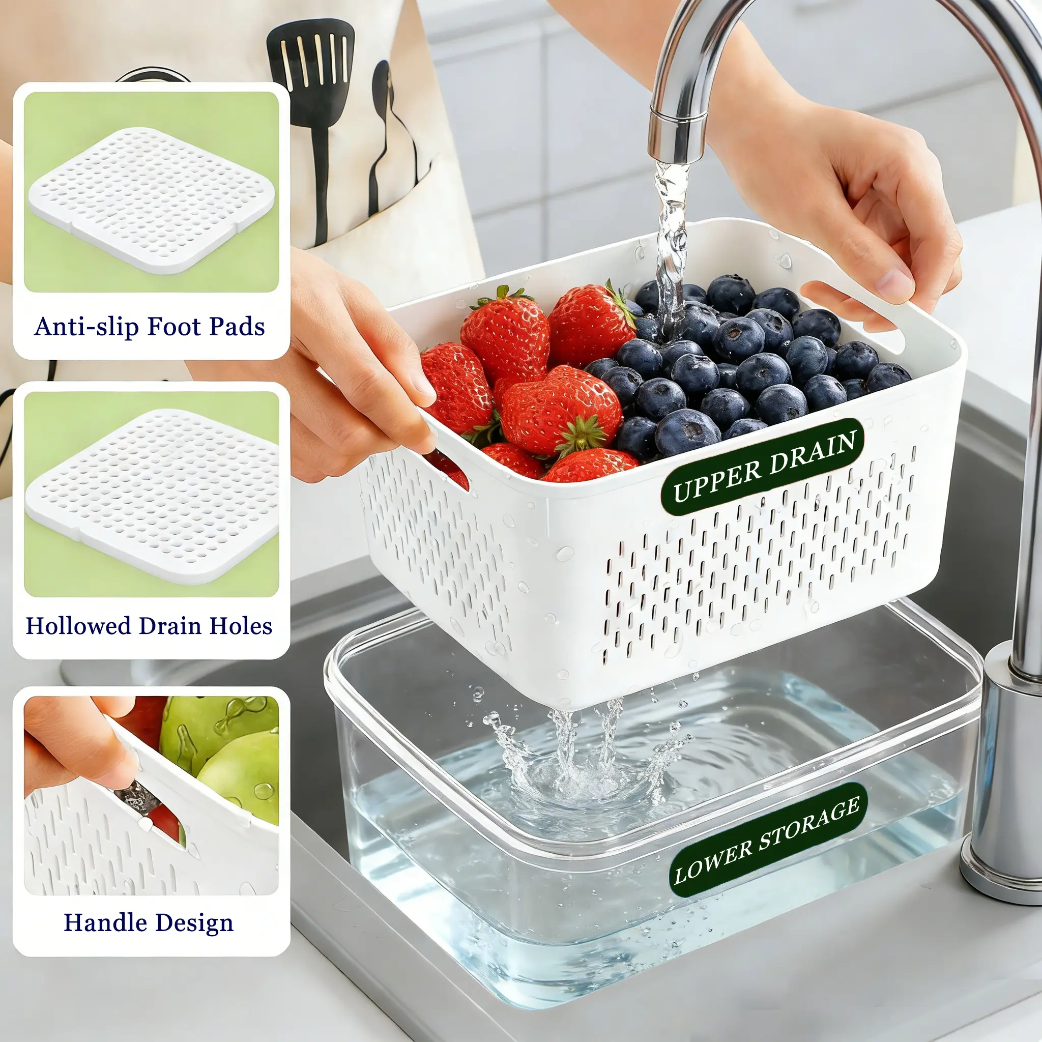 Wash, drain, store, and serve—all in one container. No need for extra bowls or strainers. Ideal for berries, grapes, cherry tomatoes, leafy greens, and more.