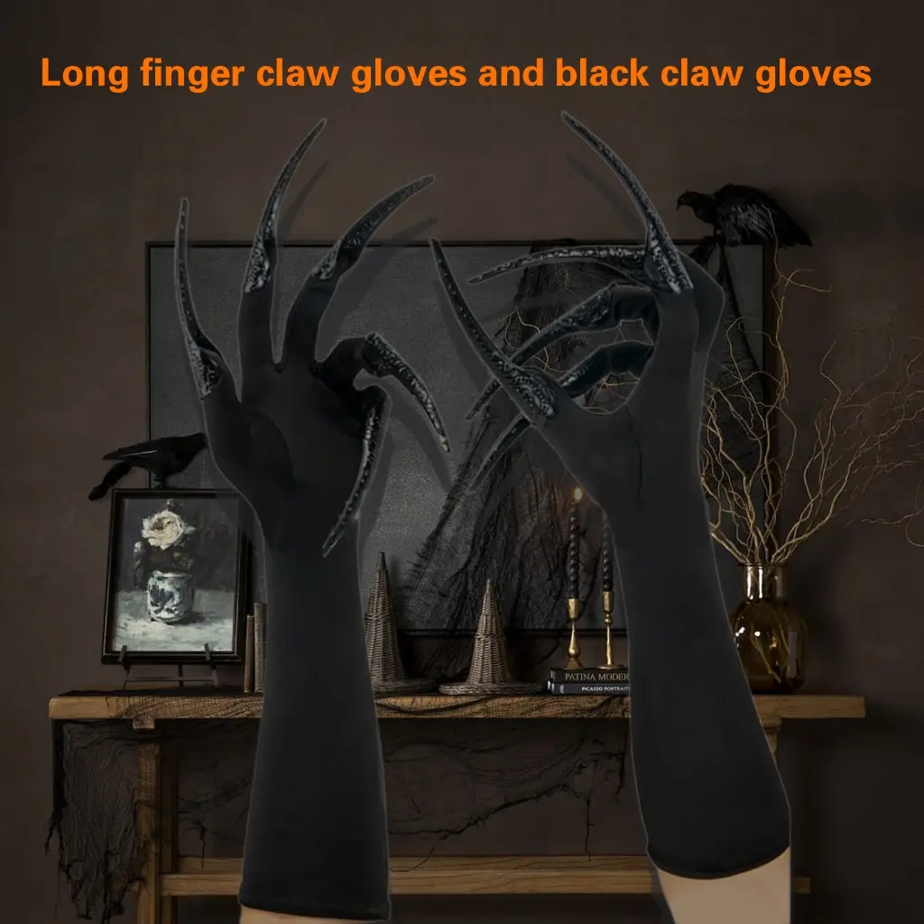 Transform into the creature of the night effortlessly with these long nails gloves, designings to captivate onlookers at any themed gathering.