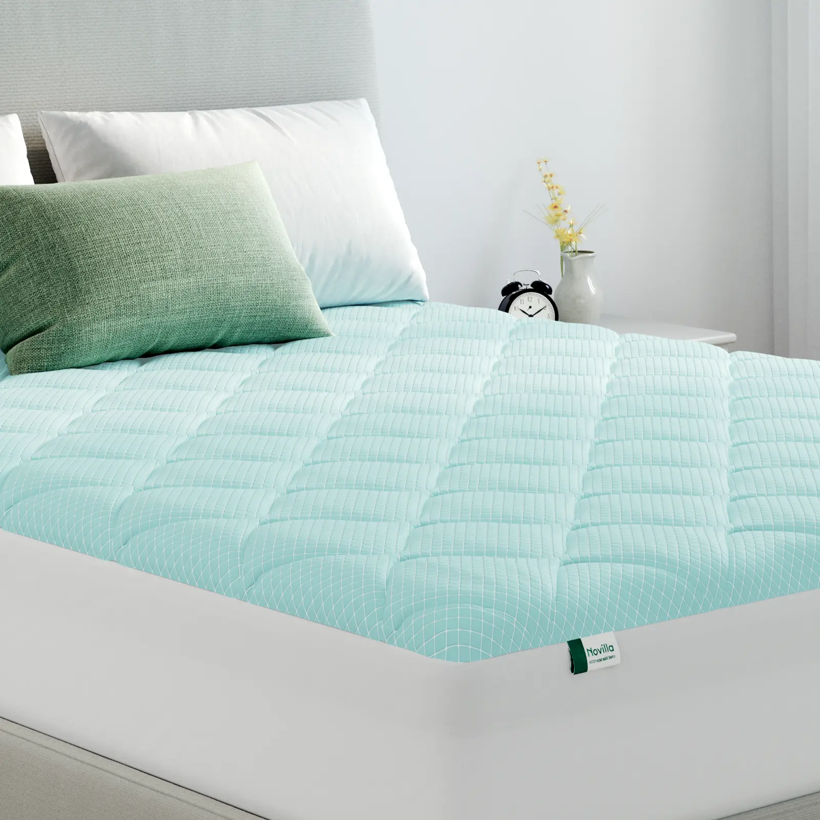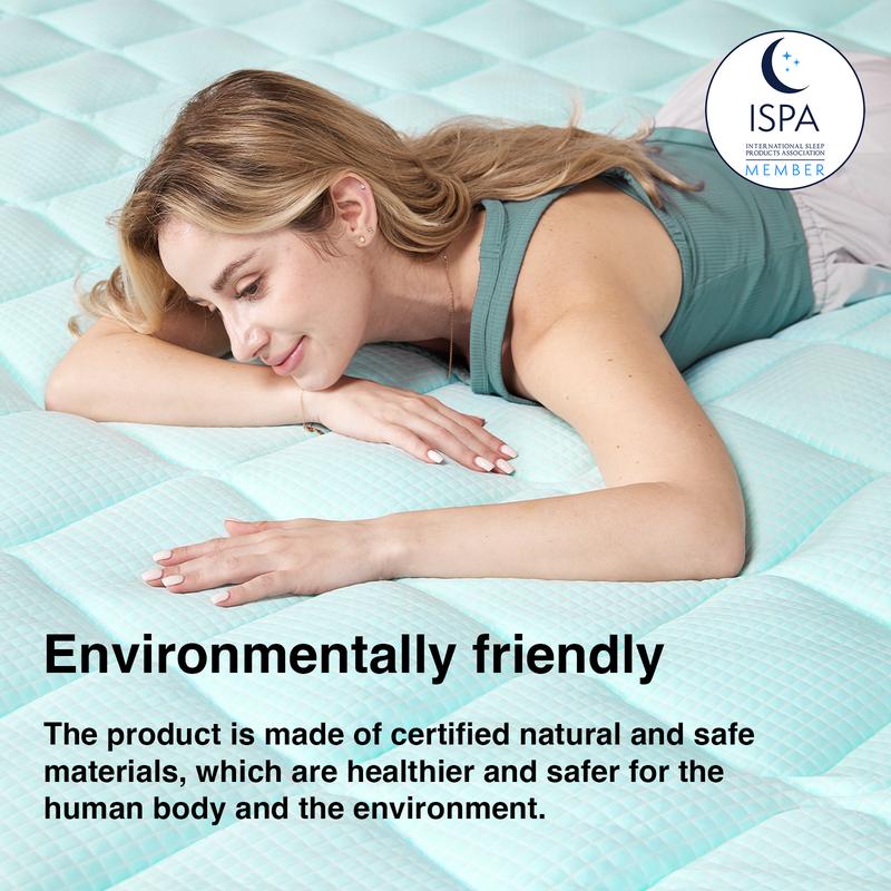 【Twin-Phase Cooling】Novilla Mattress Topper features a three-layer air fabric structure, ensuring excellent breathability. Infused with 40% cooling factors, it delivers a dual cooling effect, making it especially ideal for summer and hot sleepers.Cooling mattress pad efficiently dissipates heat, regulates body temperature, improves sleep quality, and promotes longer periods of deep sleep.