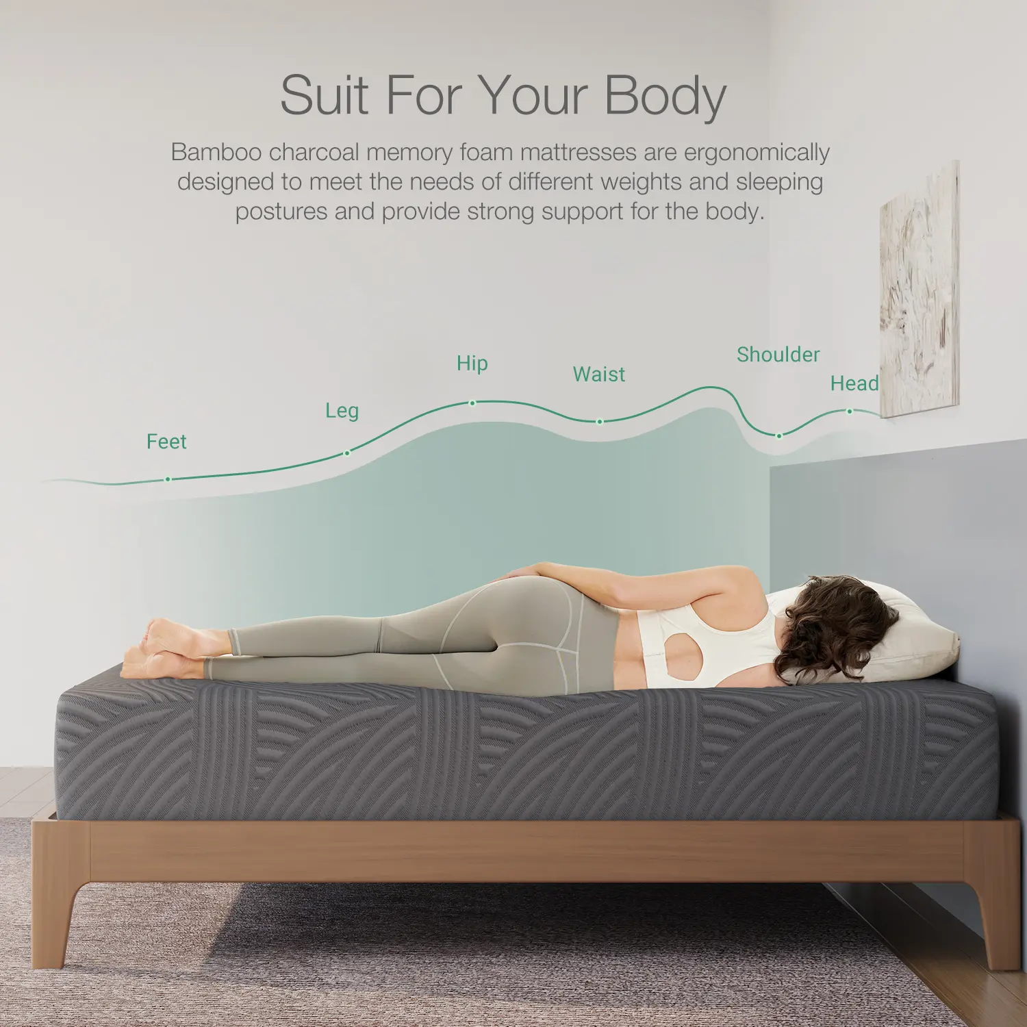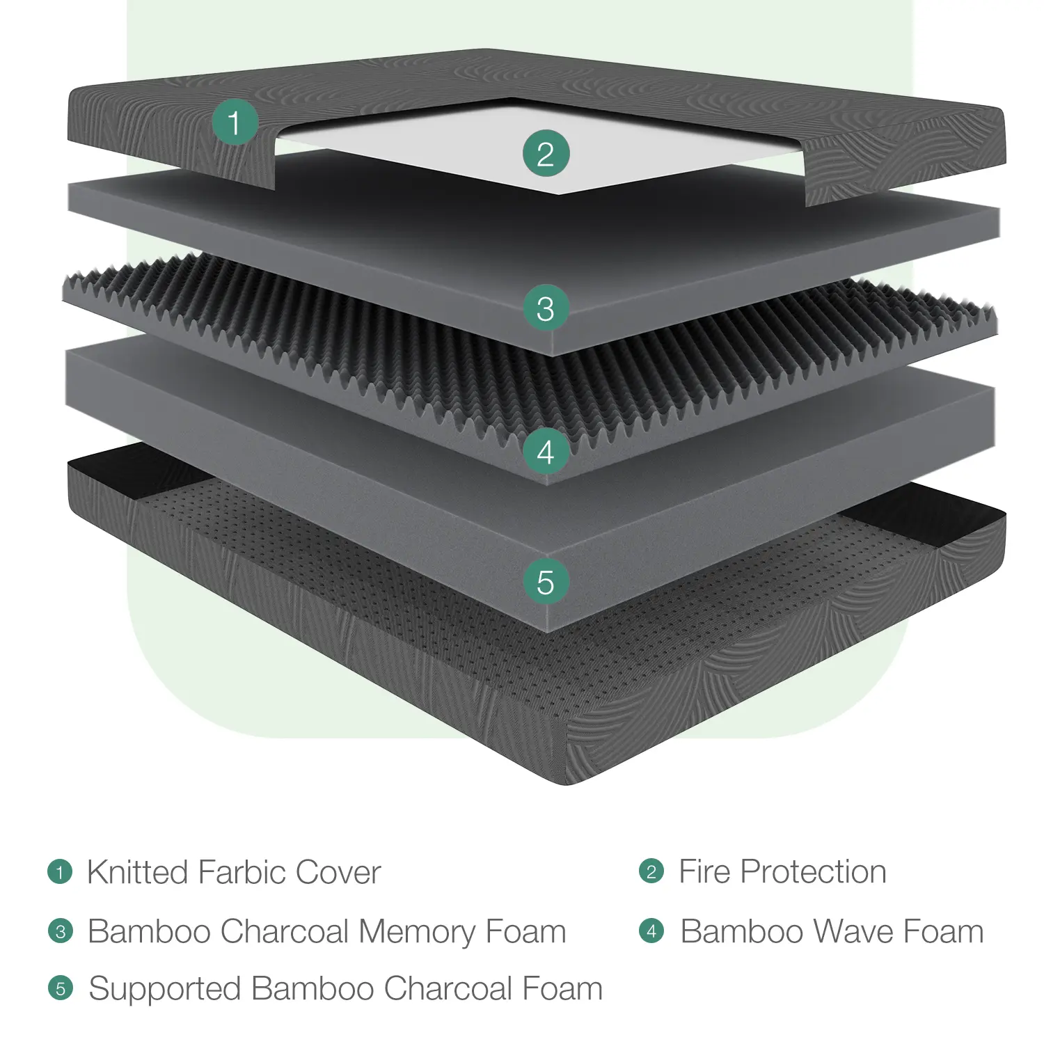 ·Bamboo Charcoal Memory Foam: This high-density foam layer enhances body support, providing enhanced body support and reducing sinking.