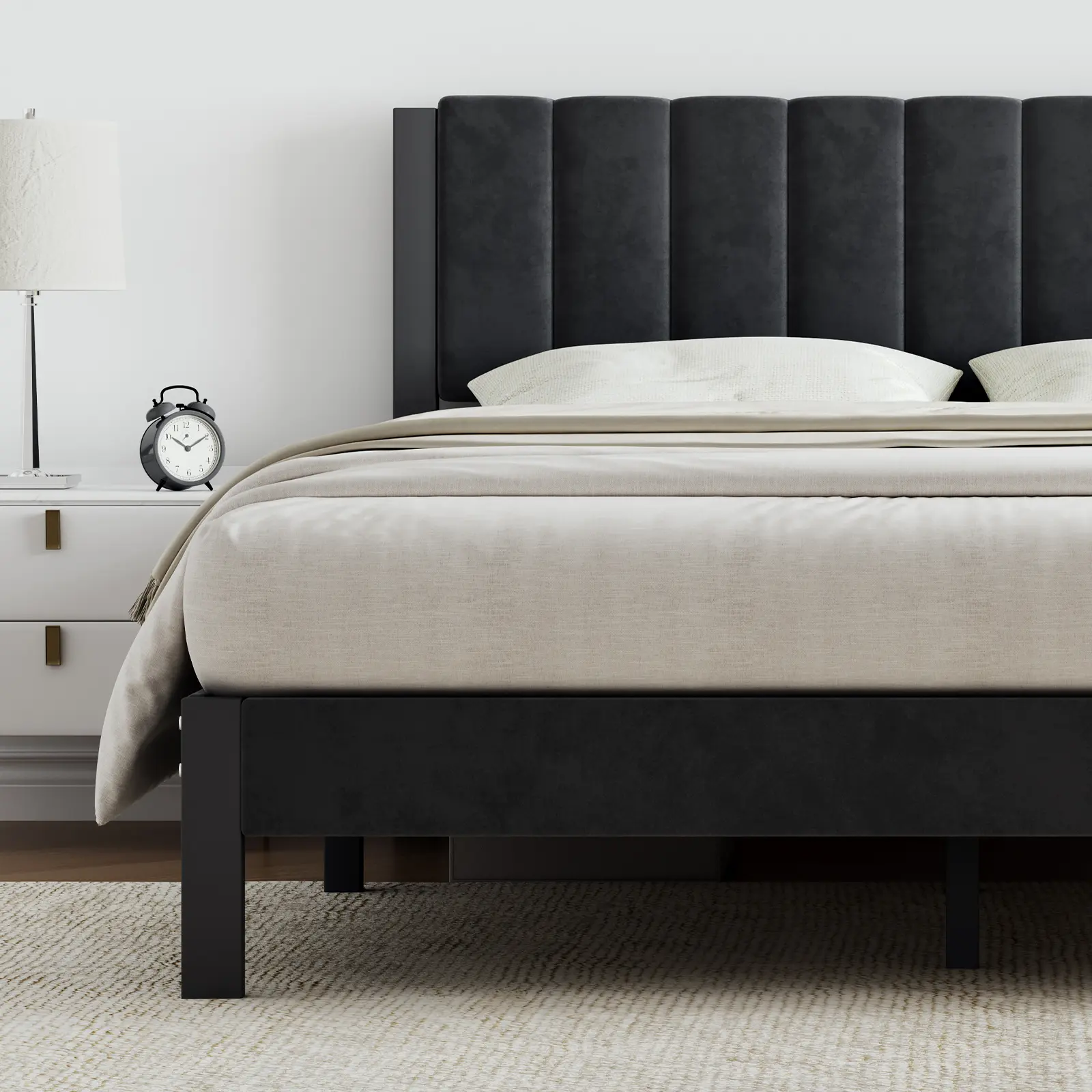 【Piano Keys Headboard】Who says your bed can't hit the right notes? Our queen bed frame rocks a headboard inspired by piano keys. Available in classic black or crisp white , it's the perfect duet with any decor style.We've dressed the headboard of this bed frame in premium velvet and stuffed it with high-resilience foam that's basically a hug in furniture form. Forget those icy headboards on typical queen size bed frames that shock you awake—ours greets you like a warm high-five.