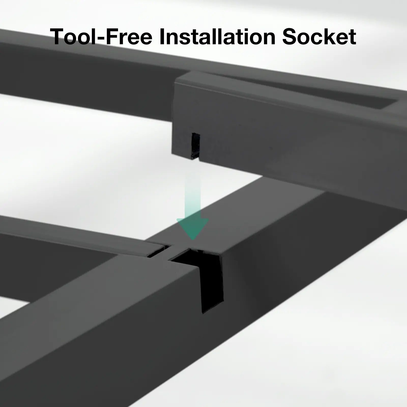 【Full Metal Slat Platform】This metal queen bed frame features an all metal structural support platform, constructed with 11 metal slats and 9 metal support legs, providing robust reinforcement for the bed frame. Whether you're a starfish sleeper or just appreciate extra stability, this queen bed frame with headboard has you covered.
