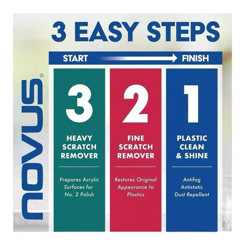 ✔ Novus #1 Plastic Clean & Shine (2 oz.) – Restores clarity & adds a protective layer.