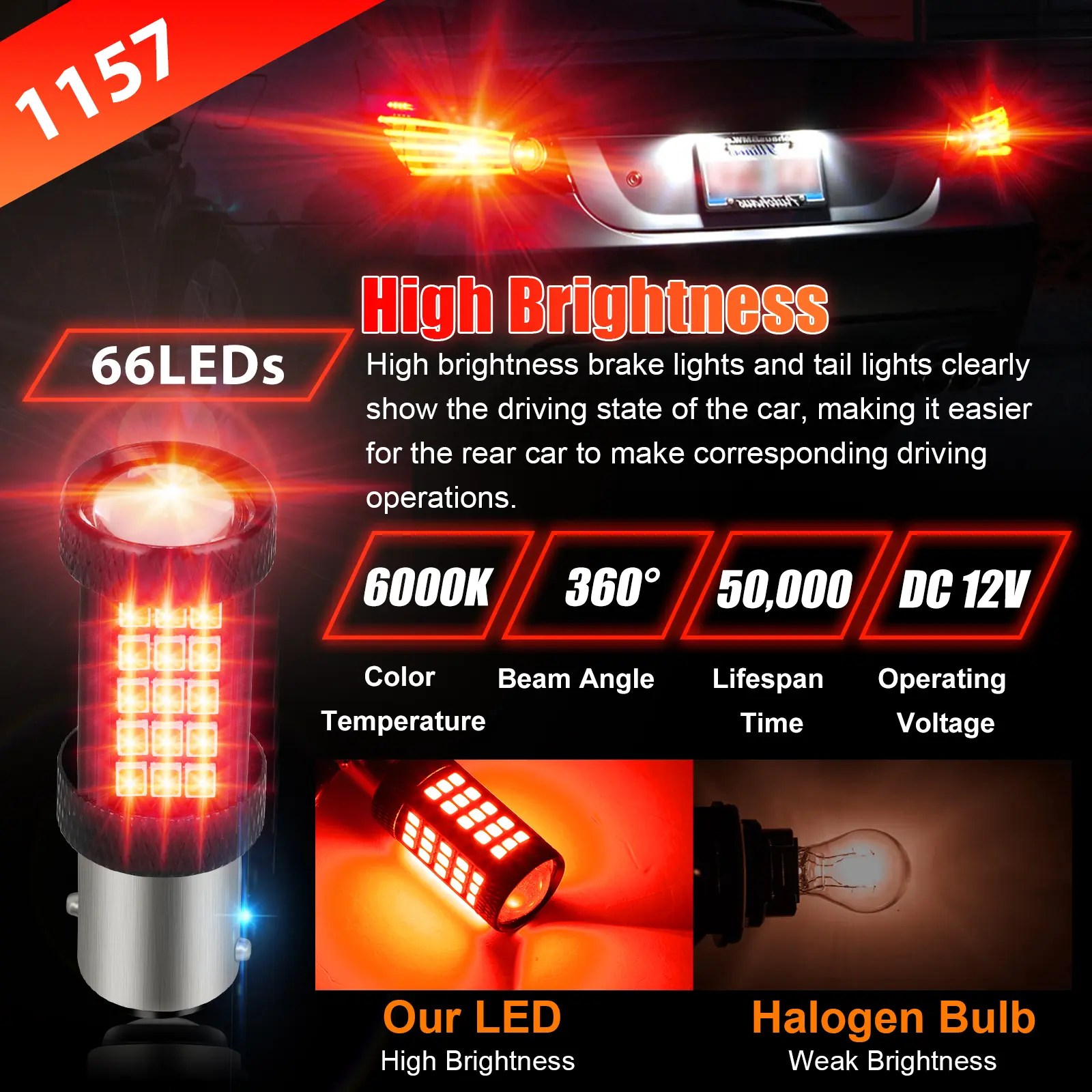 ·1157 Base: Compatible with standard 1157 bulb sockets, ensuring easy installation.