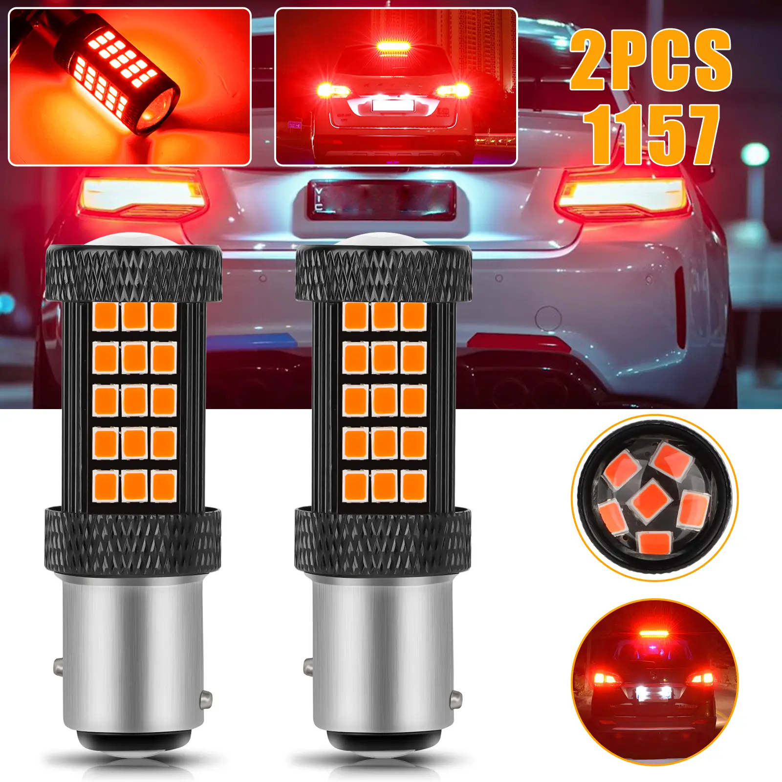 ·2PCS 1157 66LED Red Strobe Flashing Blinking Brake Stop Tail Parking Light Bulbs are designed for enhanced visibility and safety. These bulbs feature a vibrant red color, ensuring your vehicle stands out. The 66LED technology provides a bright and consistent light output. Perfect for brake, stop, tail, and parking lights.