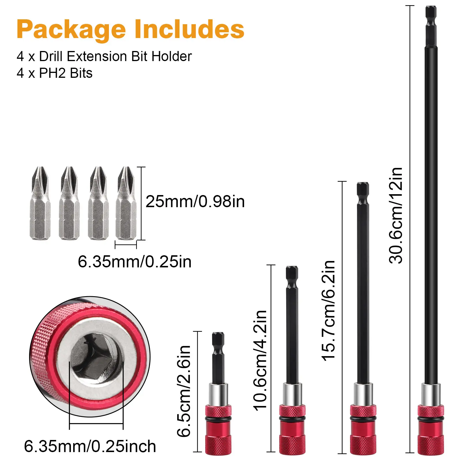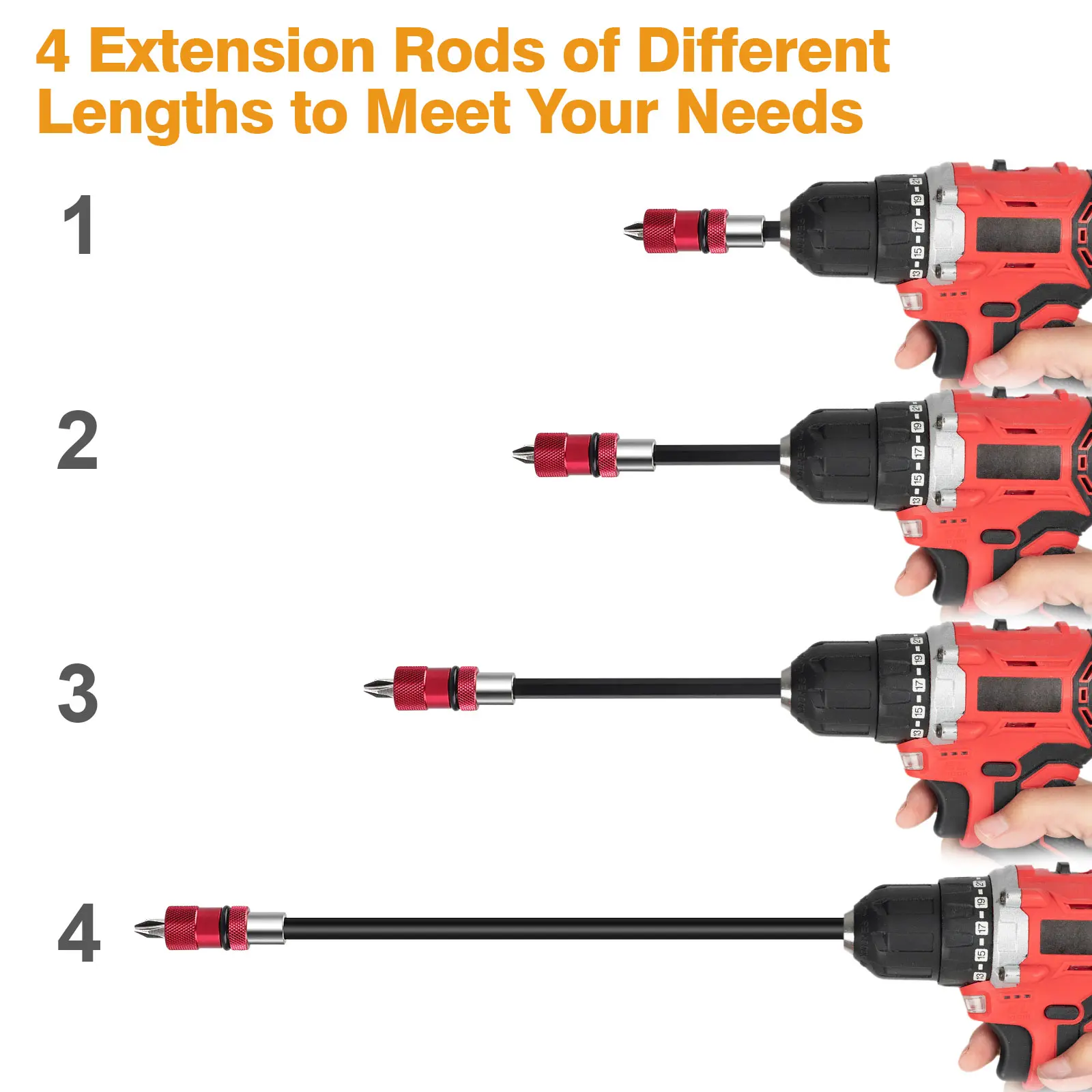 This set offers 2/4/6/12 Inches extension chuck adapters. Choose the right length for your needs. The quick release mechanism ensures hassle-free switching between bits. Ideal for both DIY enthusiasts and professionals. 🛠️