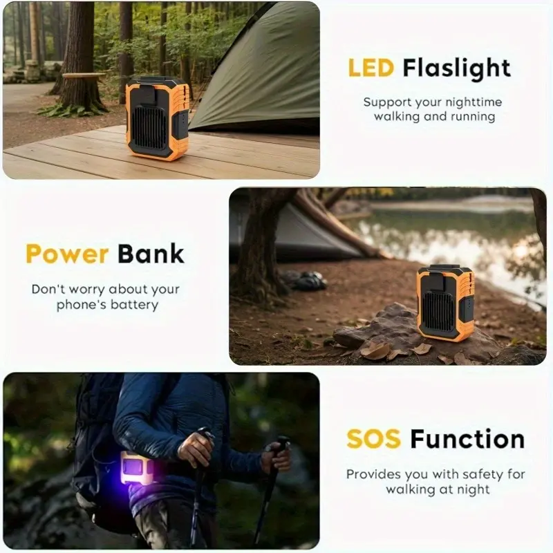 Stay cool anywhere with this high-performance portable fan featuring a powerful motor up to 13000RPM. The strong airflow quickly cools your body, making it perfect for outdoor work, camping, hiking, fishing, gardening, and summer travel.