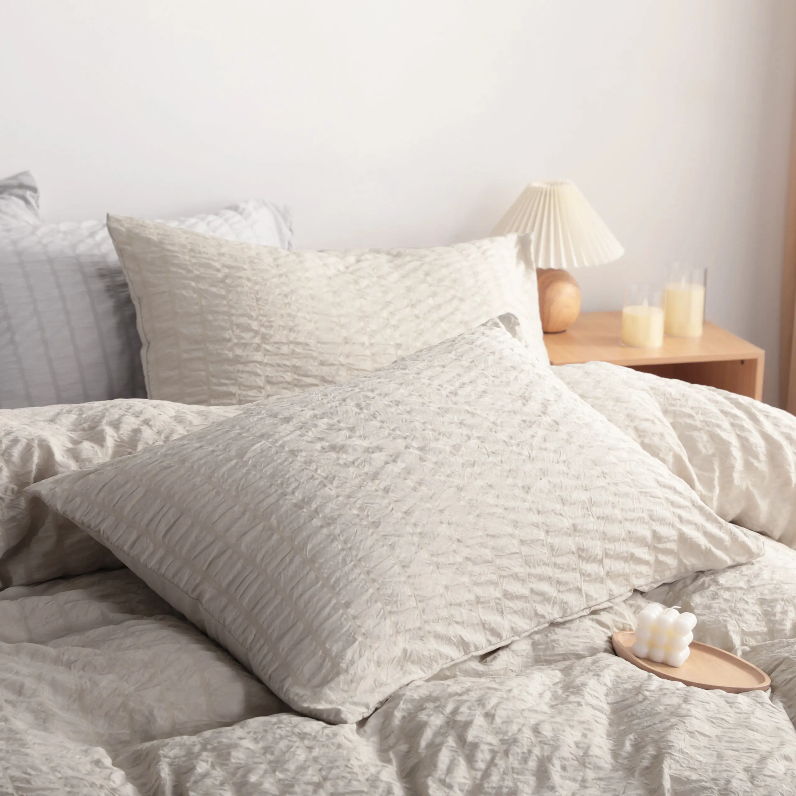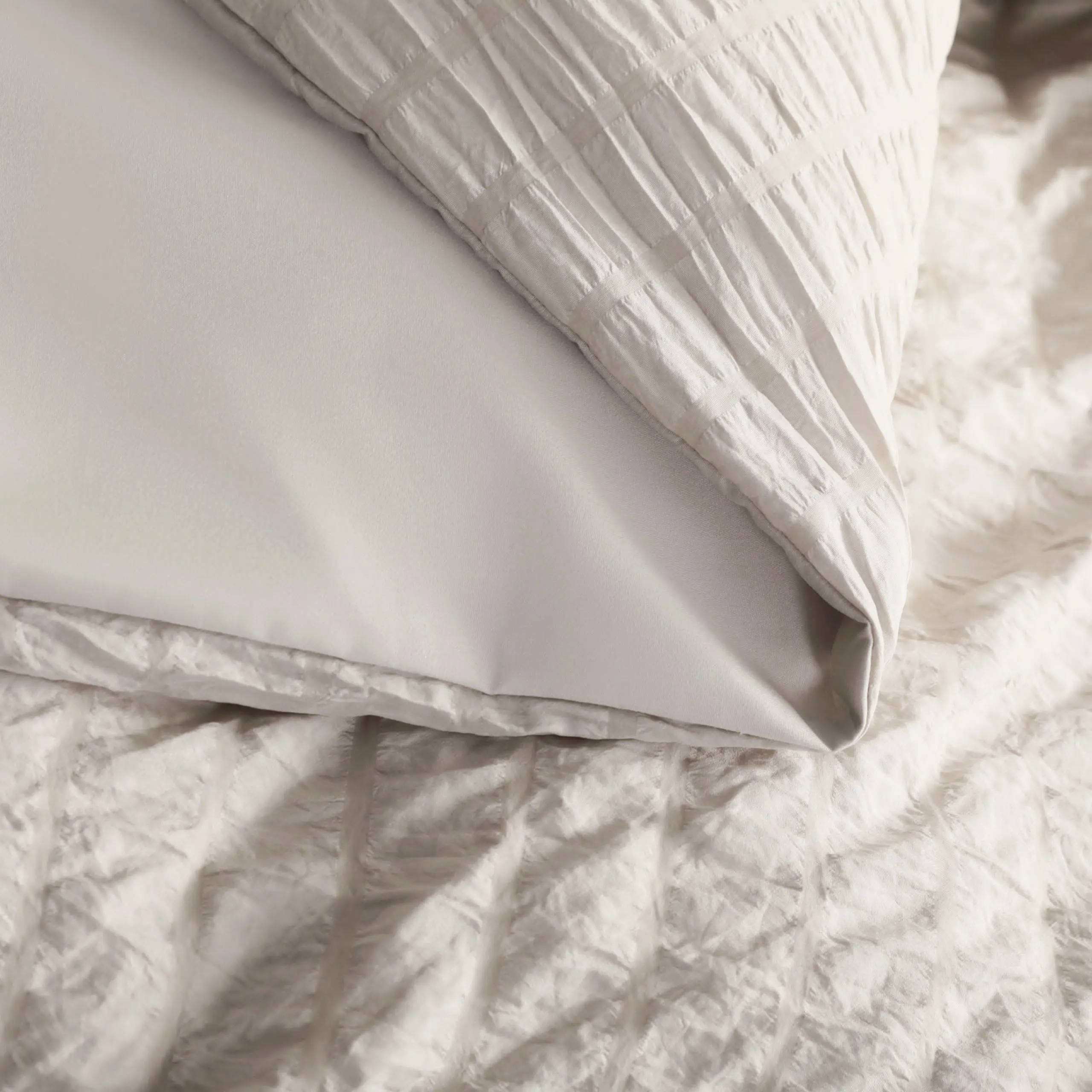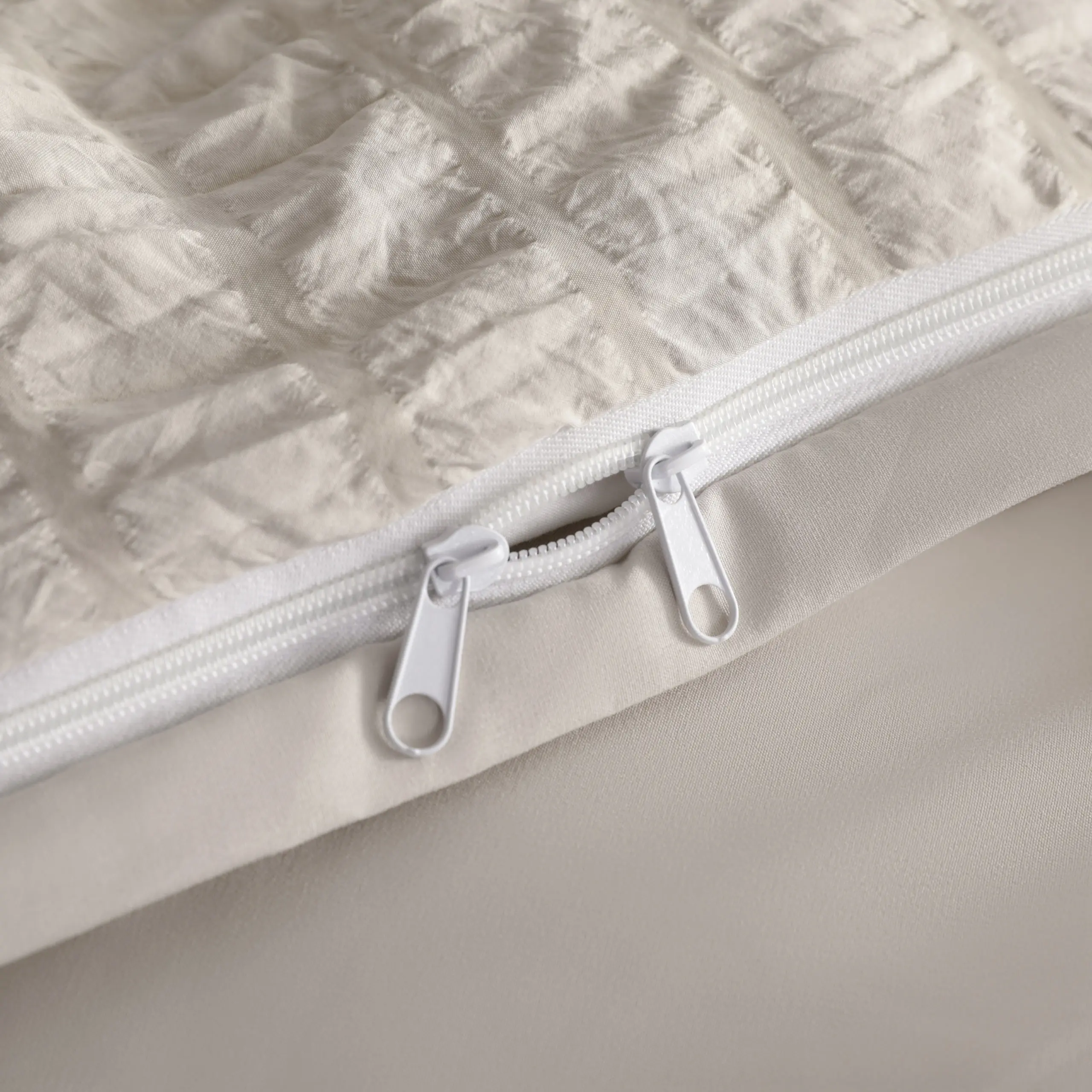 ·Nice polyester microfiber fabric. Seersucker fabric graced your homely room. With hidden zipper closure in, it's more durable and reliable than button, easy to separate and launder. Friendly design for users with four inner corner ties. The four corner ties ensure that your comforter remains immovable in the cover.