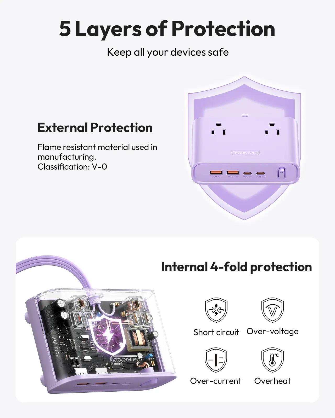 ·RoHS & ETL certified with overload, short-circuit, over-current, over-voltage, and overheating protection.