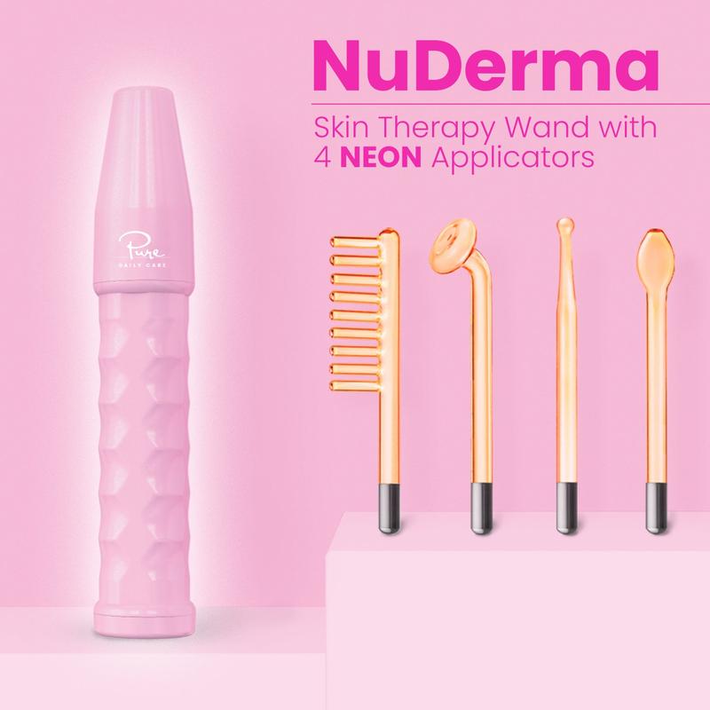Suitable for all skin types, this kit features a pink NuDerma and four Neon-powered applicators: mushroom, spot, comb and tongue tubes. It also includes an exclusive, limited-edition headband. Enjoy skin that looks healthier, clearer, and more radiant with the NuDerma High Frequency Wand, bringing professional-grade skincare to your home.