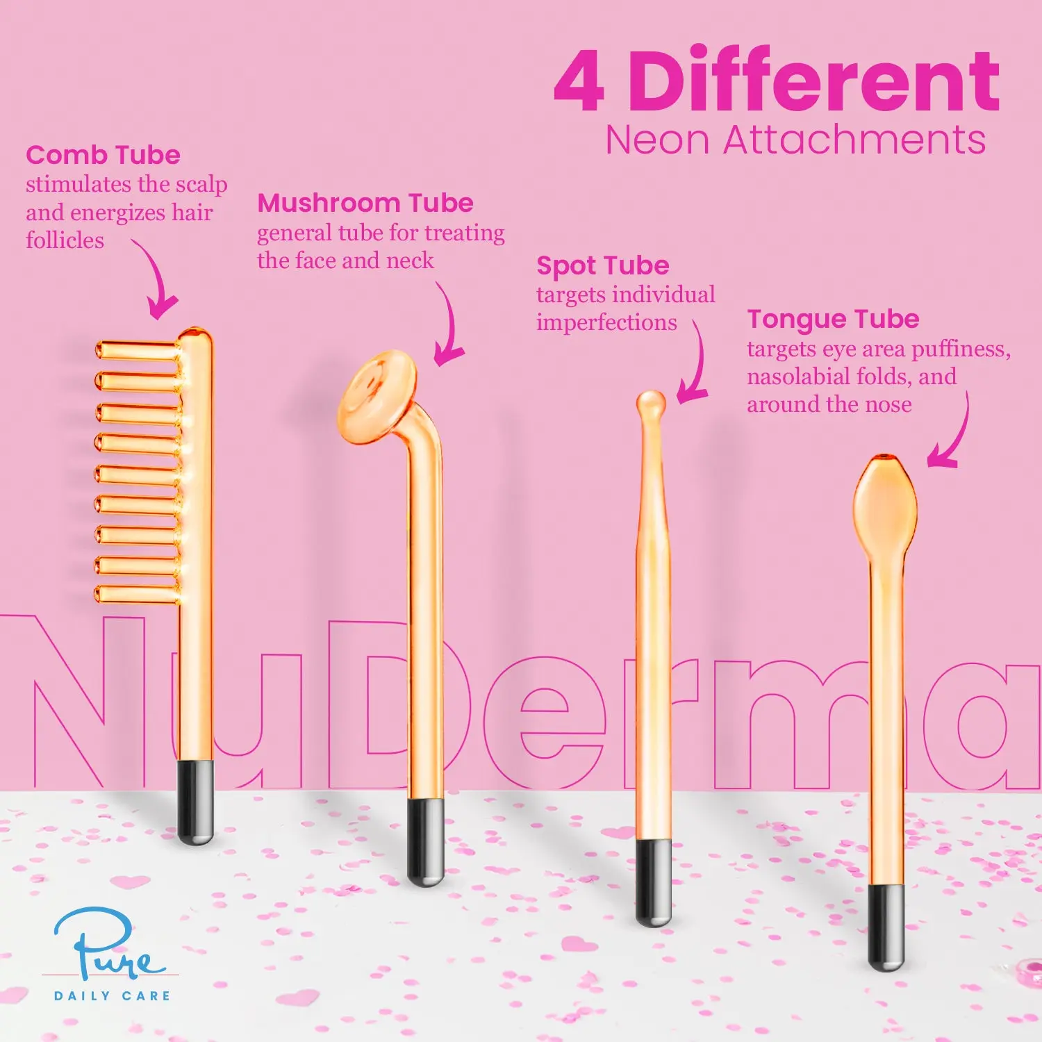 Anti-Aging Neon Applicators – The four included Neon powered applicators deliver targeted skin boosting benefits, no matter your skin type. NuDerma sessions energize and oxygenate the skin to increase cellular activity - It’s like a workout for your skin.