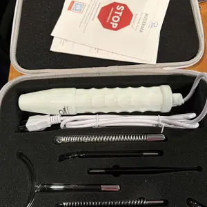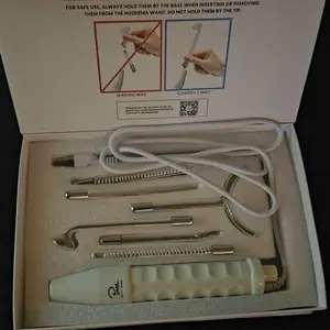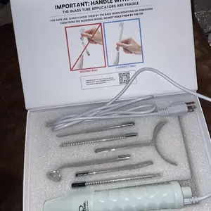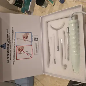 What's in the Box – 1 NuDerma Device, Neon powered Mushroom wand, Neon powered Y-Shape wand, Neon powered Comb wand, argon powered tongue wand, argon powered Rod wand, argon powered spot wand, quick-start treatment guides, instruction and support contact manual.