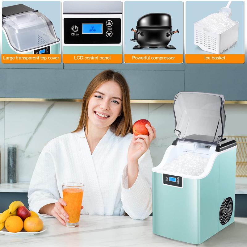 5. Antarctic Star Nugget Ice Maker Machine with Soft & Chewable Ice, Self-Cleaning, Automatic 44lbs in 24 Hours, Electric Ice Making Machine with Ice Scoop, LED Display, for Home, Kitchen, Office (GREEN) Utensils Lid Transparent