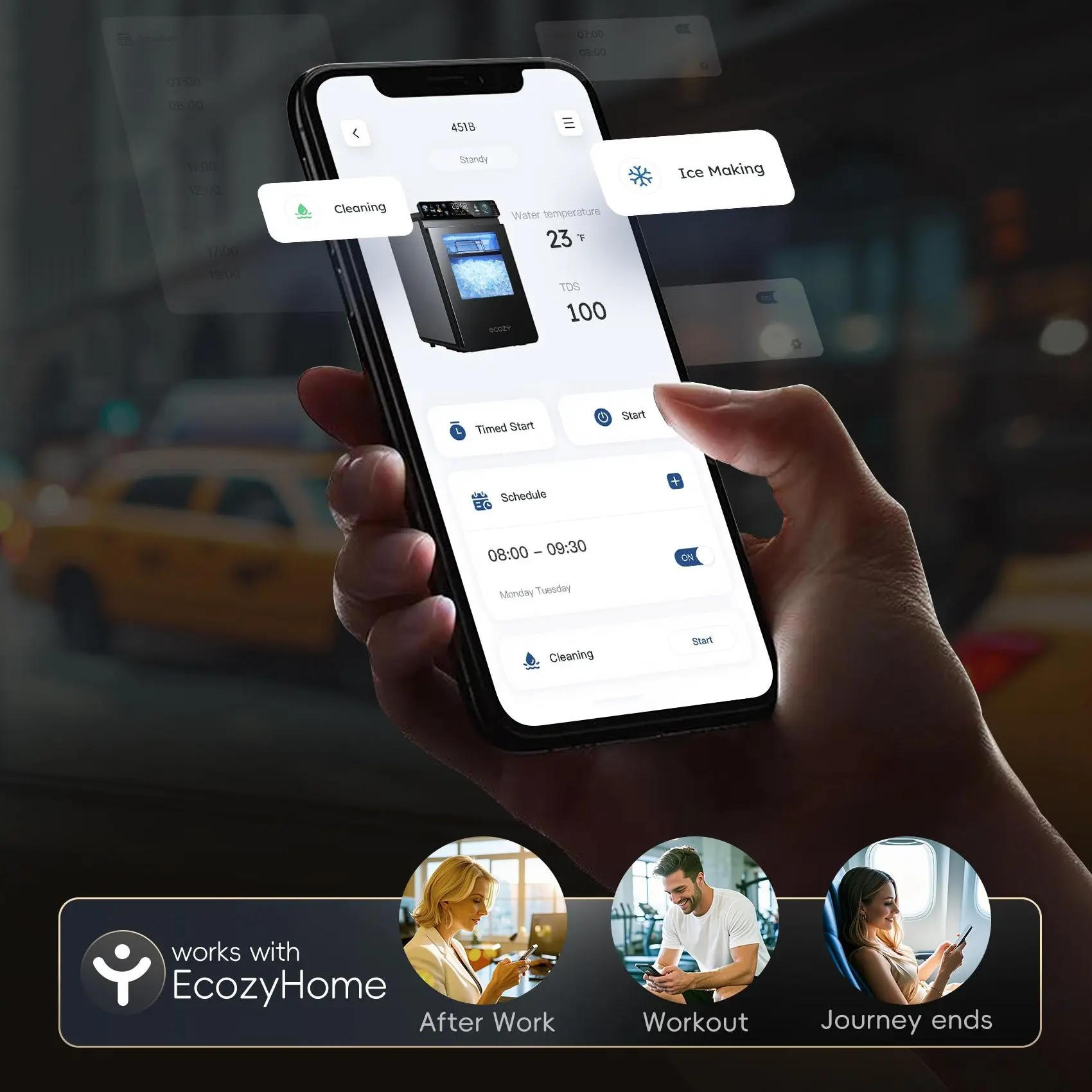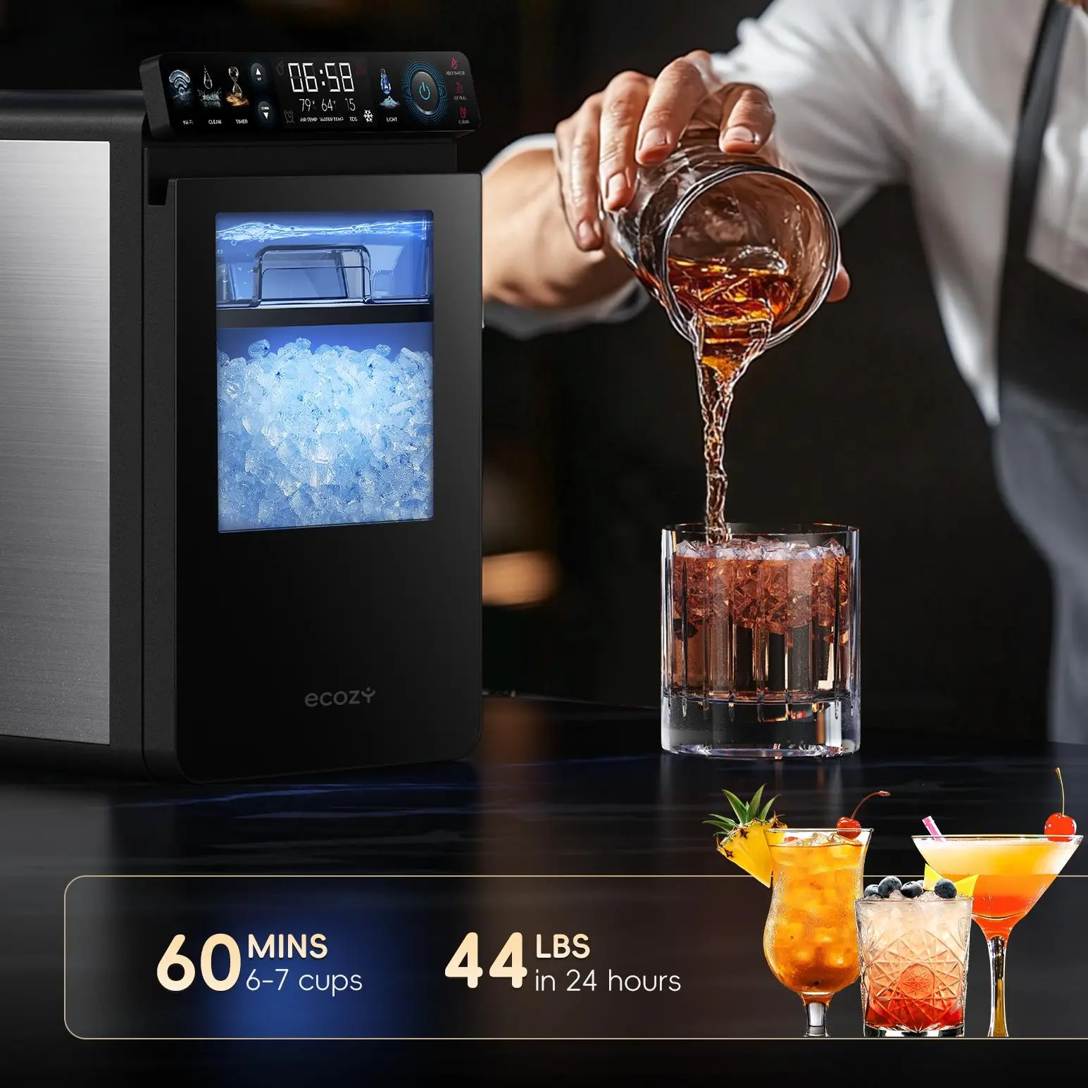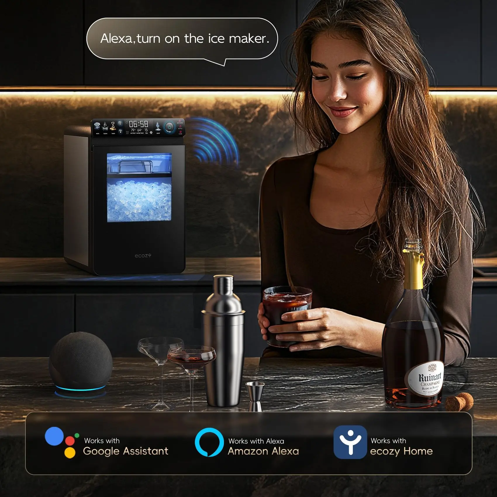 ·Smart App & Voice Control: Use the EcozyHome app or voice commands via Alexa and Google Assistant to start, stop ice anytime, from anywhere