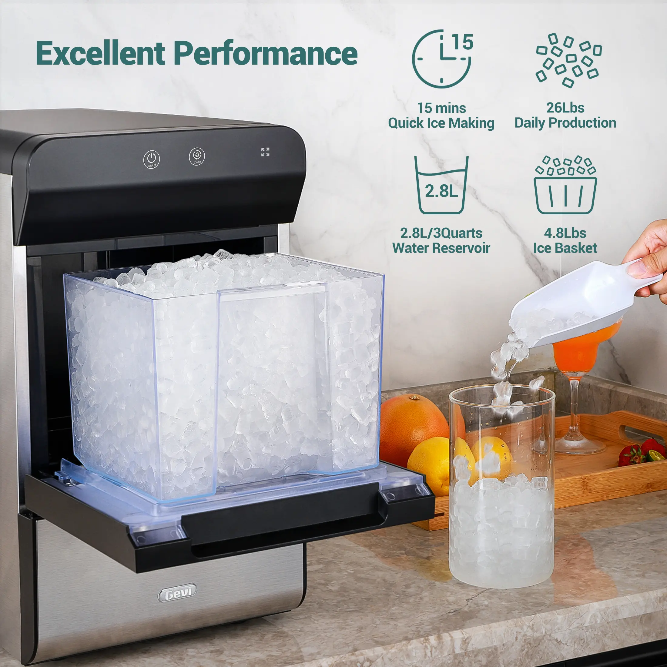 5. 【Springtok】Gevi Countertop Nugget Ice Maker with viewing window | User-Friendly Self-Cleaning | Auto Water Refill |Stainless Steel Housing