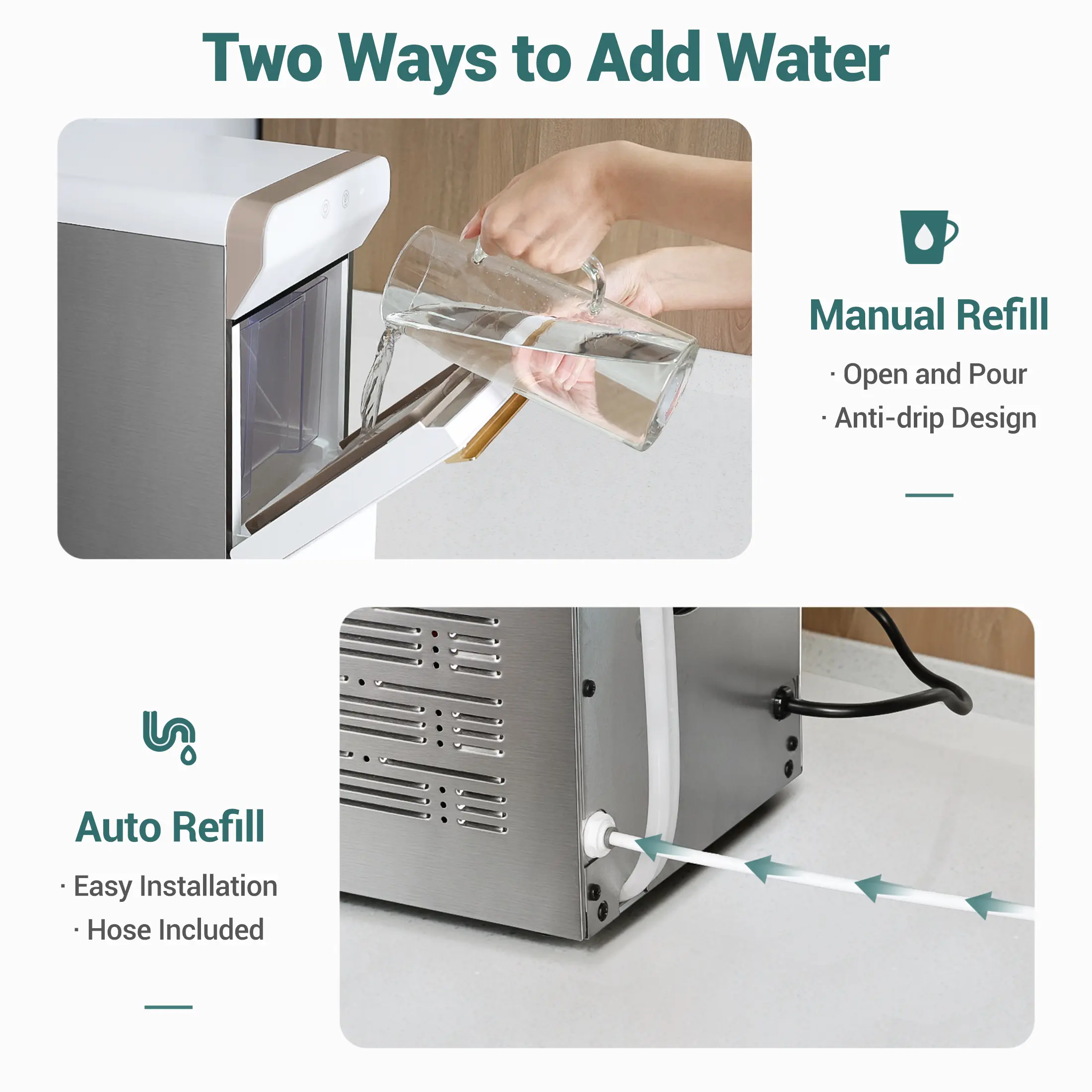 ❄️ Nugget Ice at Home: Enjoy soft, chewable nugget ice perfect for any drink—right from your countertop!