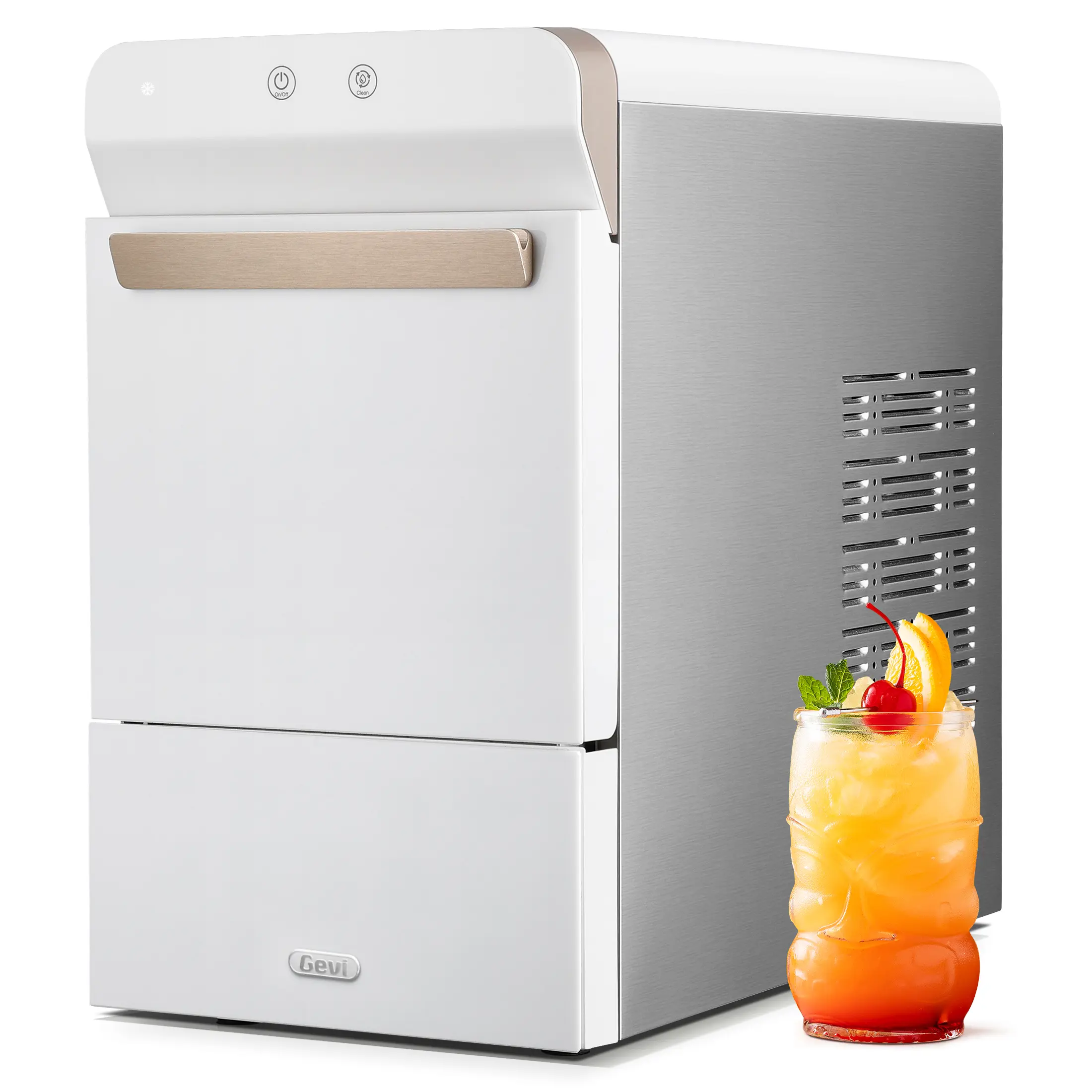 5. 【Springtok】Gevi Elegant Countertop Nugget Ice Maker in Gold and White | User-Friendly Self-Cleaning | Easy Water Refill | Luxurious Stainless Design