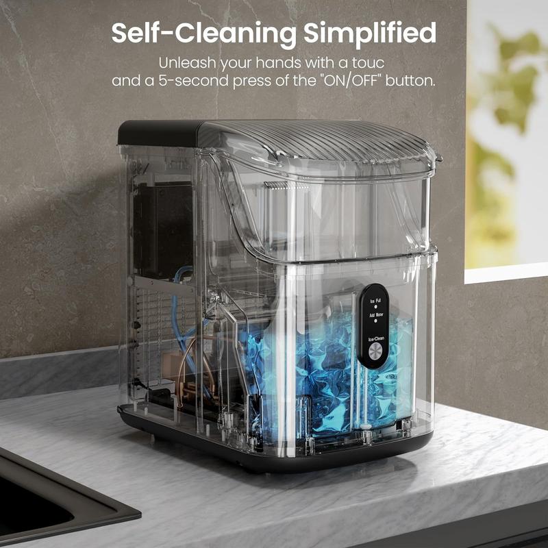 Say goodbye to tedious cleaning. Simply press the ON/OFF button for a 5-second self-cleaning cycle. In just 15 minutes, your ice maker returns to pristine condition, ready to serve fresh ice. This feature enhances convenience without compromising on cleanliness.