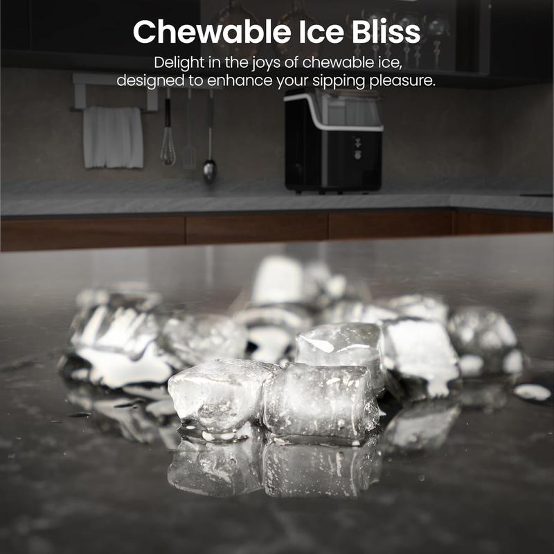 Enjoy the delightful crunchiness of chewable nugget ice. Its compacted, layered structure offers a slow melt and superior texture. Ideal for slushies, cocktails, and sodas, it preserves authentic flavors. This innovative ice maker stands out with its unique taste experience.