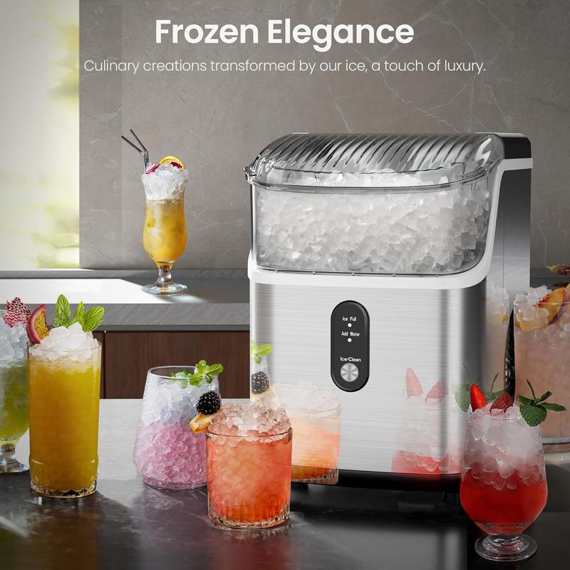 ·SOFT CHEWABLE NUGGET ICE: By extruding water and instantly freezing it in the ideal pellet shape, our nugget ice maker produces the uniquely soft, chewy nugget ice with unparalleled cooling power that can’t be replicated with normal ice cube trays, giving you a better beverage experience just at home.
