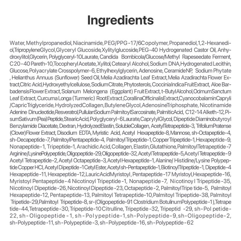 Formulated with 1,000ppm of 100% pure salmon PDRN to restore a natural glow and even skin tone by strengthening the skin barrier and supporting overall skin health. Powered by NAD+, an anti-aging ingredient that boosts cell turnover, stimulates collagen production, and supports repair, along with 50 peptides to visibly firm and plump the skin. *The formula’s soft violet hue comes from Vitamin B12, while its natural pearlescence is derived from ceramides.