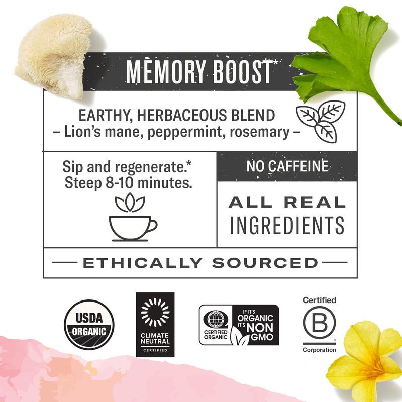 IngredientsOrganic hibiscus,organic ginkgo,organic Lion’s mane,organic peppermint,organic spearmint,organic rosemary,organic licorice,organic damiana,organic marshmallow root