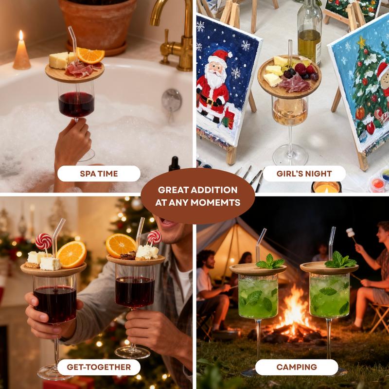 ·Unique Design: This 3 in 1 wine glass set includes a snack plate and straw. Perfect for festive gatherings, Thanksgiving, Friendsgiving, Christmas parties, bathtime, and girls' date nights. 🎉