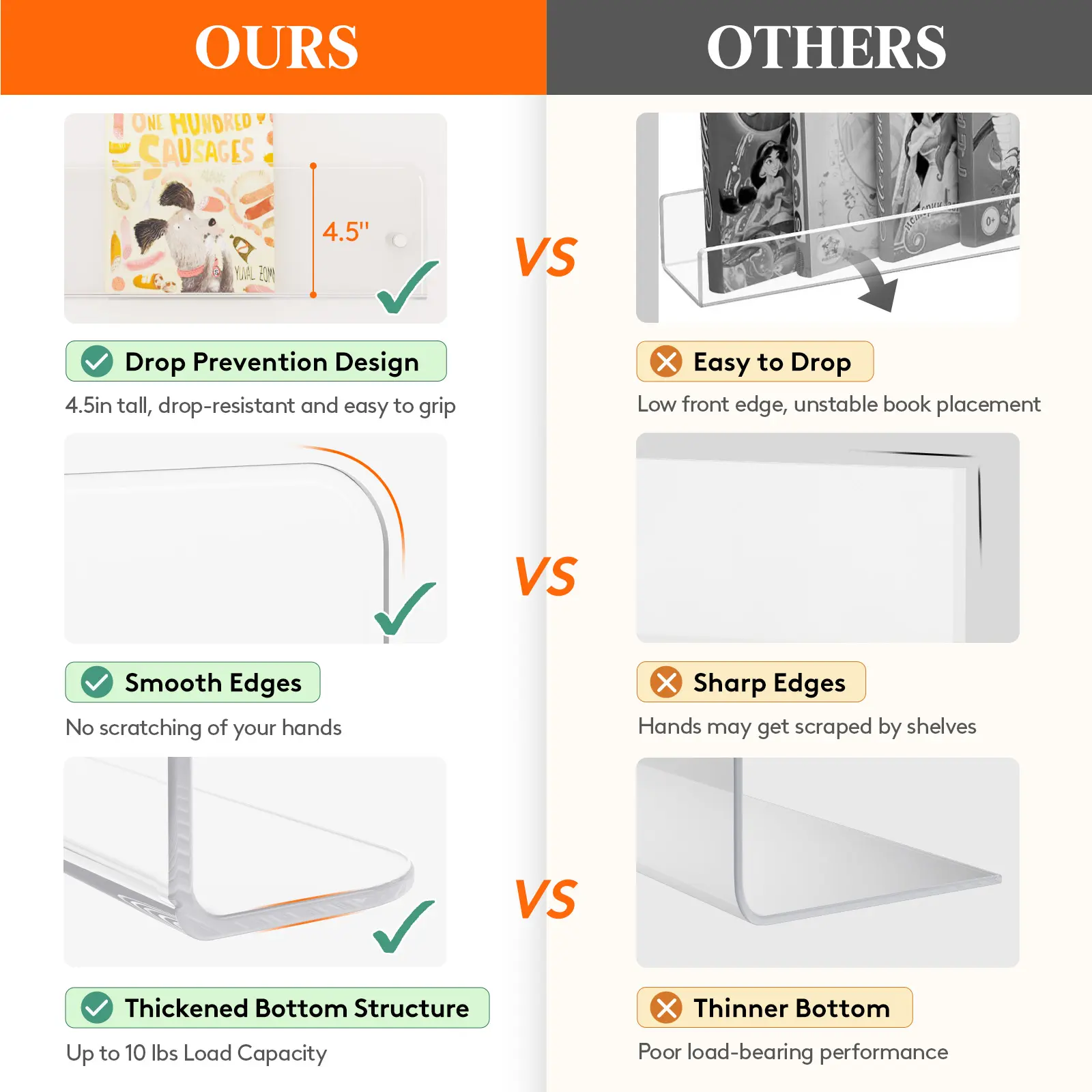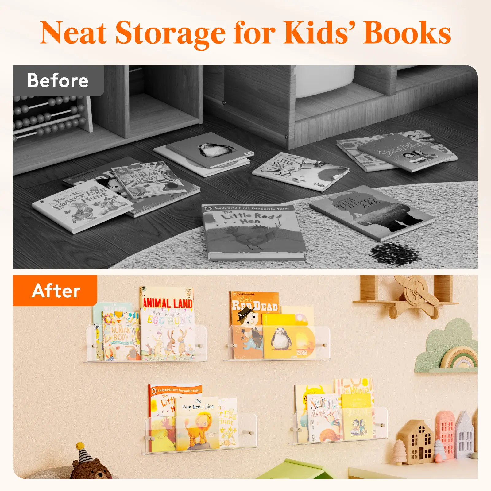 ·Designed for Children's Book Storage: Features a 4.5-inch front barrier to secure children's books, with half of the book covers visible for easy access and self-organization.